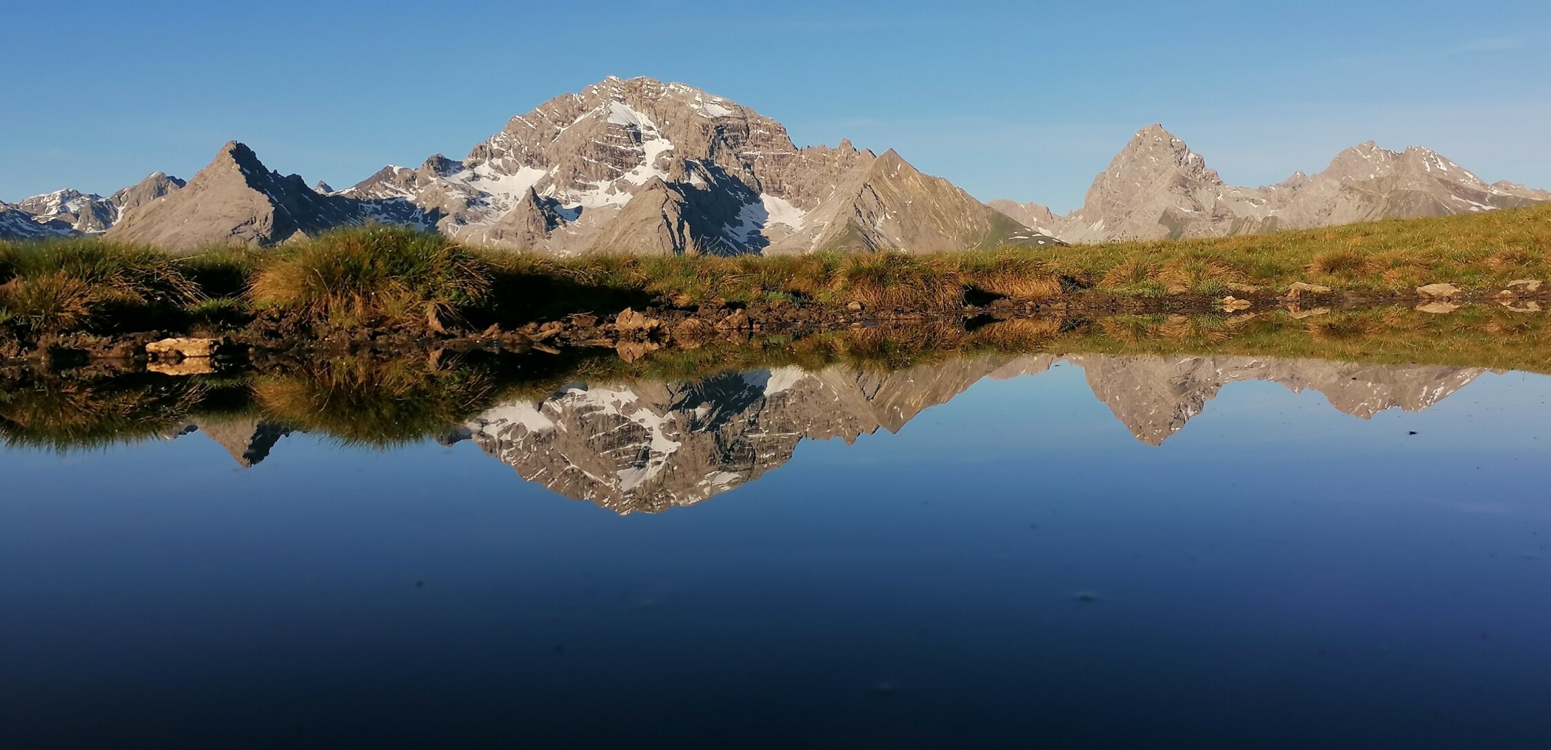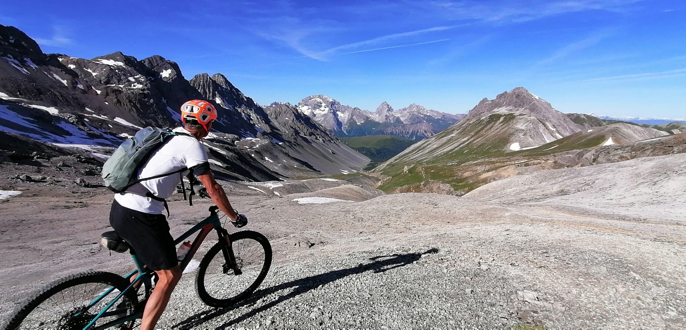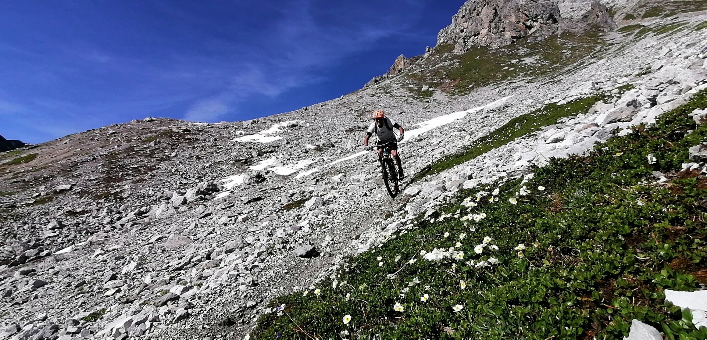 Erstaundlich trocken... Schneeefelder noch an allen Übergängen.