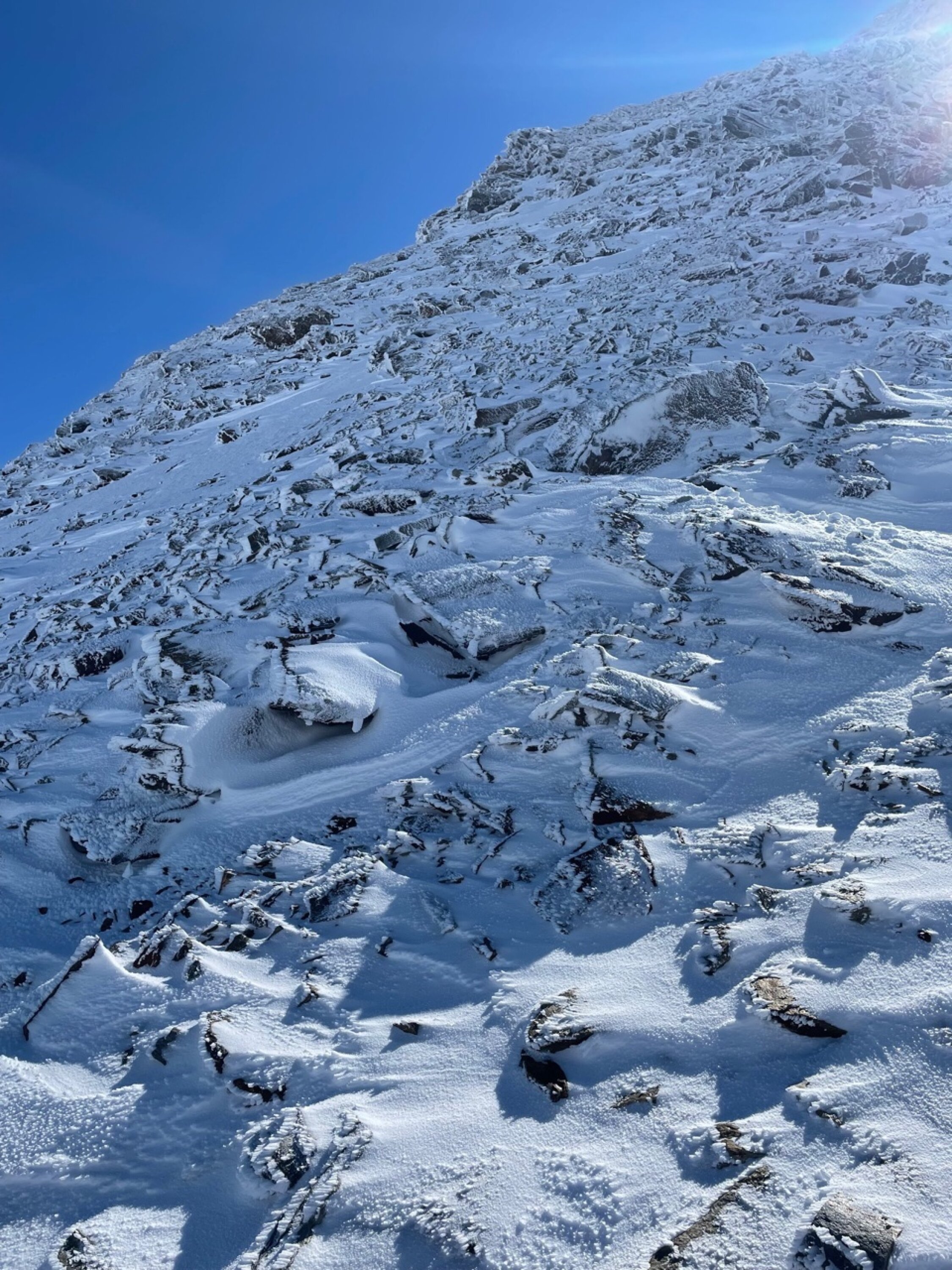 Auf dem Grat war es allerdings auch etwas verblasen und teilweise war es unter dem Schnee auch vereist.