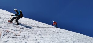Der Niederschlag am Vortag störte nicht. Es hatte perfekte Verhältnisse und freie Sicht, auch am Gipfel. Die Gletscher-Steilstufe auf dem Normalweg erforderte Konzentration.