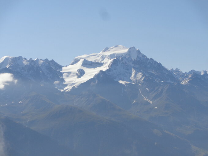Er bietet eine herausragende Rundumsicht. D.h. Das Mont Blanc Massiv, der Mont Vélan, Grand Combin, andere Walliser Riesen, und einige Berner Berge lassen grüssen!