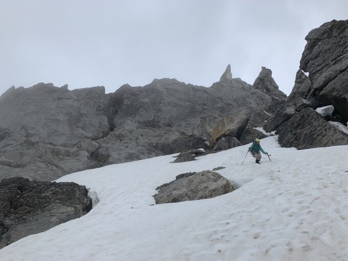 Abstieg via Normalroute genug Zeit einrechnen da Einsinken bis Hüfttiefe dazugehört.
