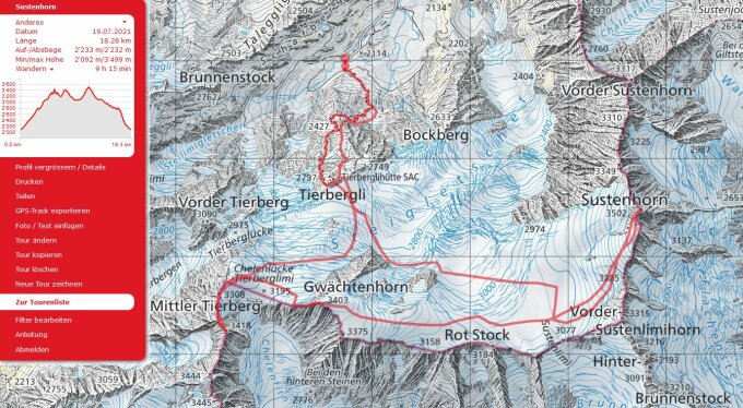 Traumtag mit sehr guten Verhältnissen ab der Tierberglihütte. Die meisten Berggänger sind auf das Sustenhorn...ca 30, davon nur 4 mit Tourenskis