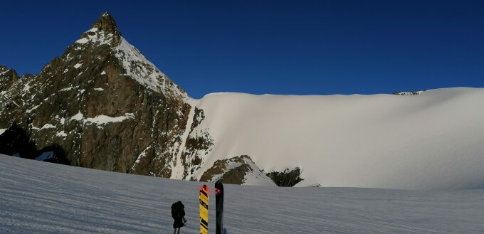 Auf dem Sommerweg sind immer noch Schneefelder zu überqueren ( muss verdient werden) Ab der Hütte top Verhältnisse, der Neuschnee hat sich gut verfestigt
