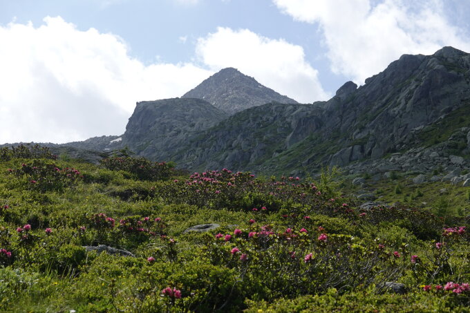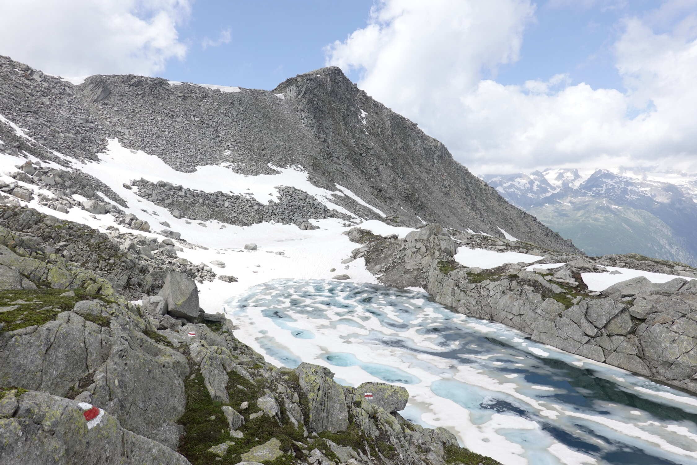 Beim Abstieg zum Ladstafel (Postauto-Haltestelle an der Nufenen-Passstrasse) lädt der grosse Distelsee zur Erfrischung.