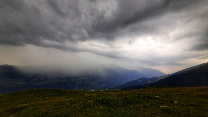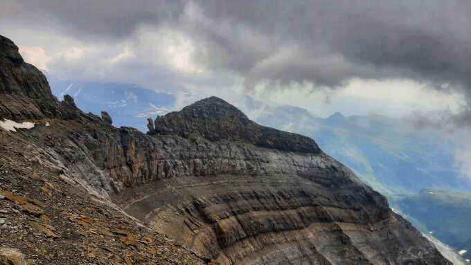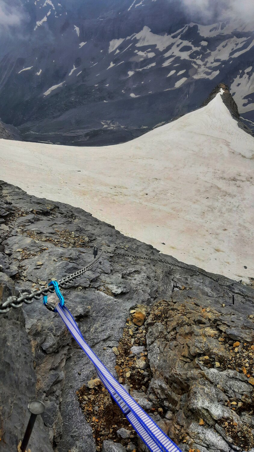 Leider schon früh in Wolken und mit angekündigten Gewittern etwas in Eile. Bänderweg komplett schneefrei, Übergänge aufs Firnfeld problemlos. Auf dem Grat teils sehr weicher Schnee.