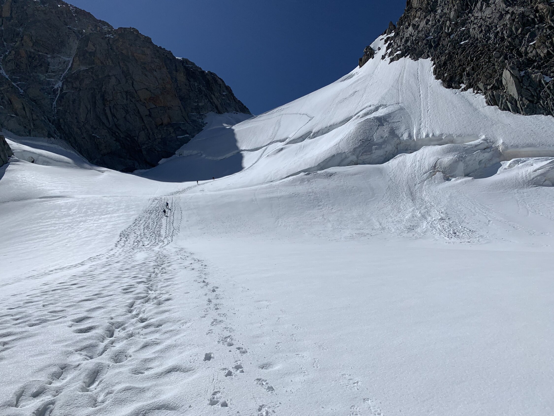 Noch einige Tage gut. Abstieg Normalroute wird eisiger.