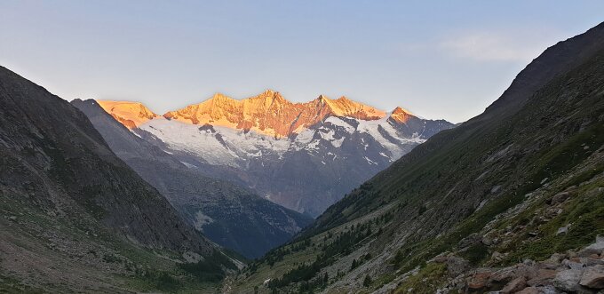 Start der Tour am 4.50 Uhr in Sass-Almagell, das Wetter heute Sternenklar, hoch durch den Wald zur Almageller Alp , ich wählte den linken Weg zur Allmagellerhütte, weiter auf Blauweiss markiertem Weg zum