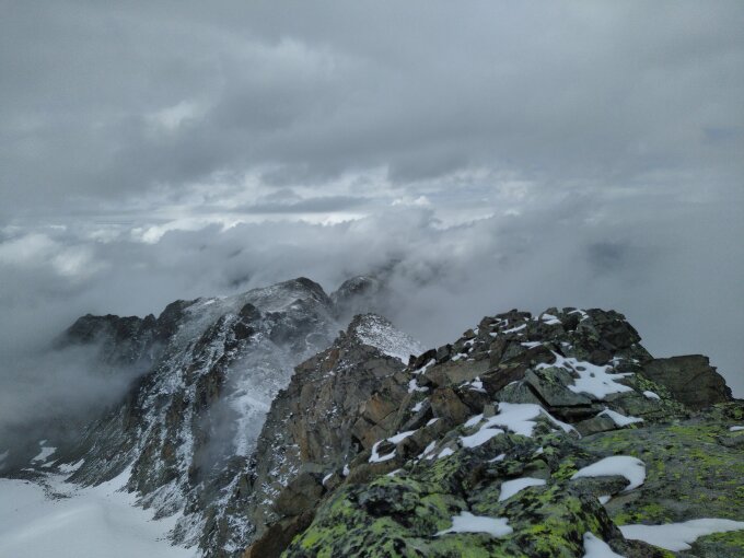 Es hatte Neuschnee ab ca. 3000 m. Das Wetter war durchzogen aber der Heidelbeerkuchen in der Bovalhütte hat geschmeckt! Der Weg ist gut signalisiert mit Steinmännern. Eine einfache Tour, allerdings werden an zwei, drei Stellen die Hände benötigt.