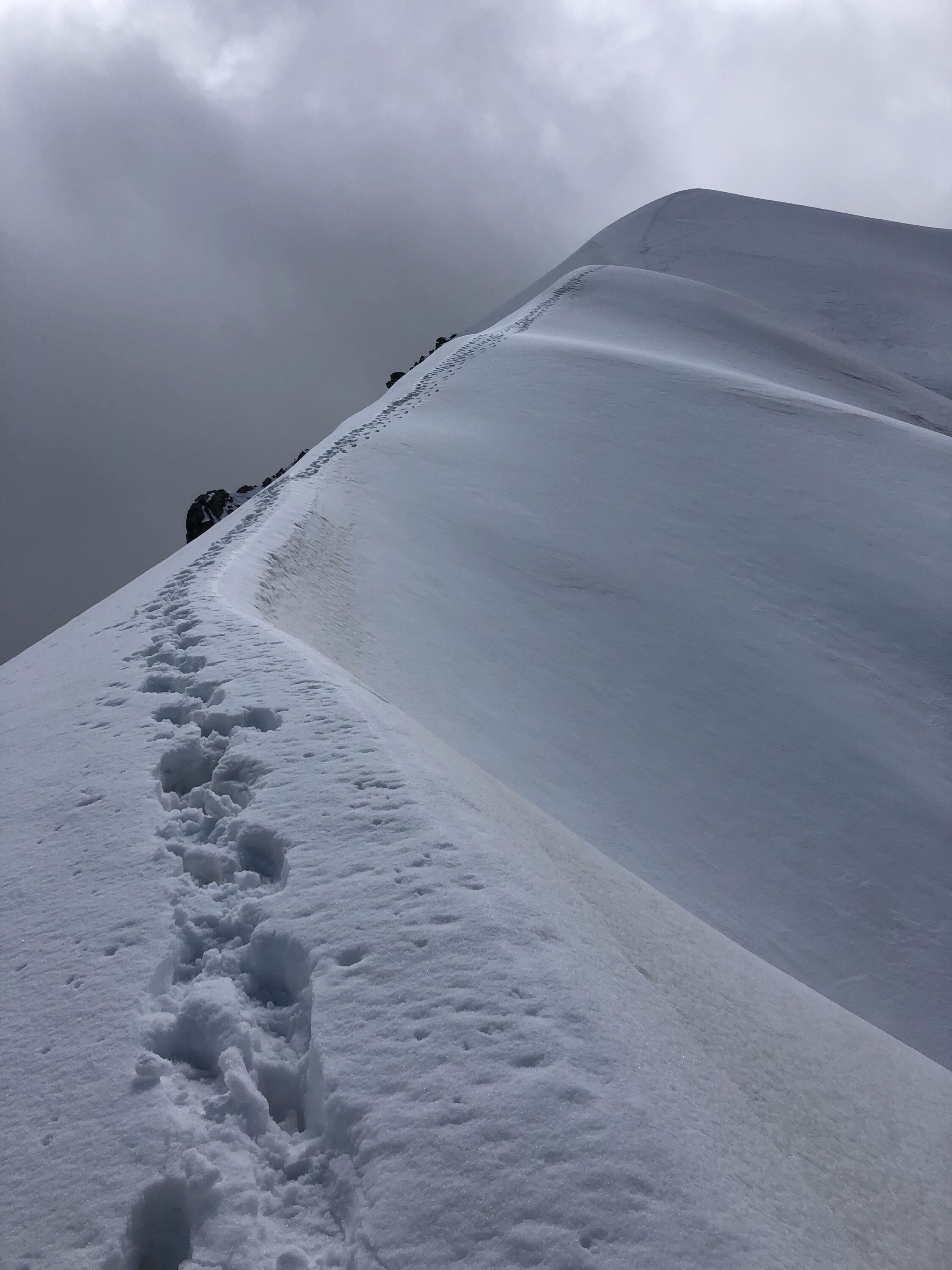 Sehr windig. Aber top Firn-Verhältnisse. Nirgends Blankeis, wenige Male eingebrochen. Der Übergang von Piz Bianco zur Bernina war etwas vereist und hatte Schnee drauf, aber nicht tragisch.