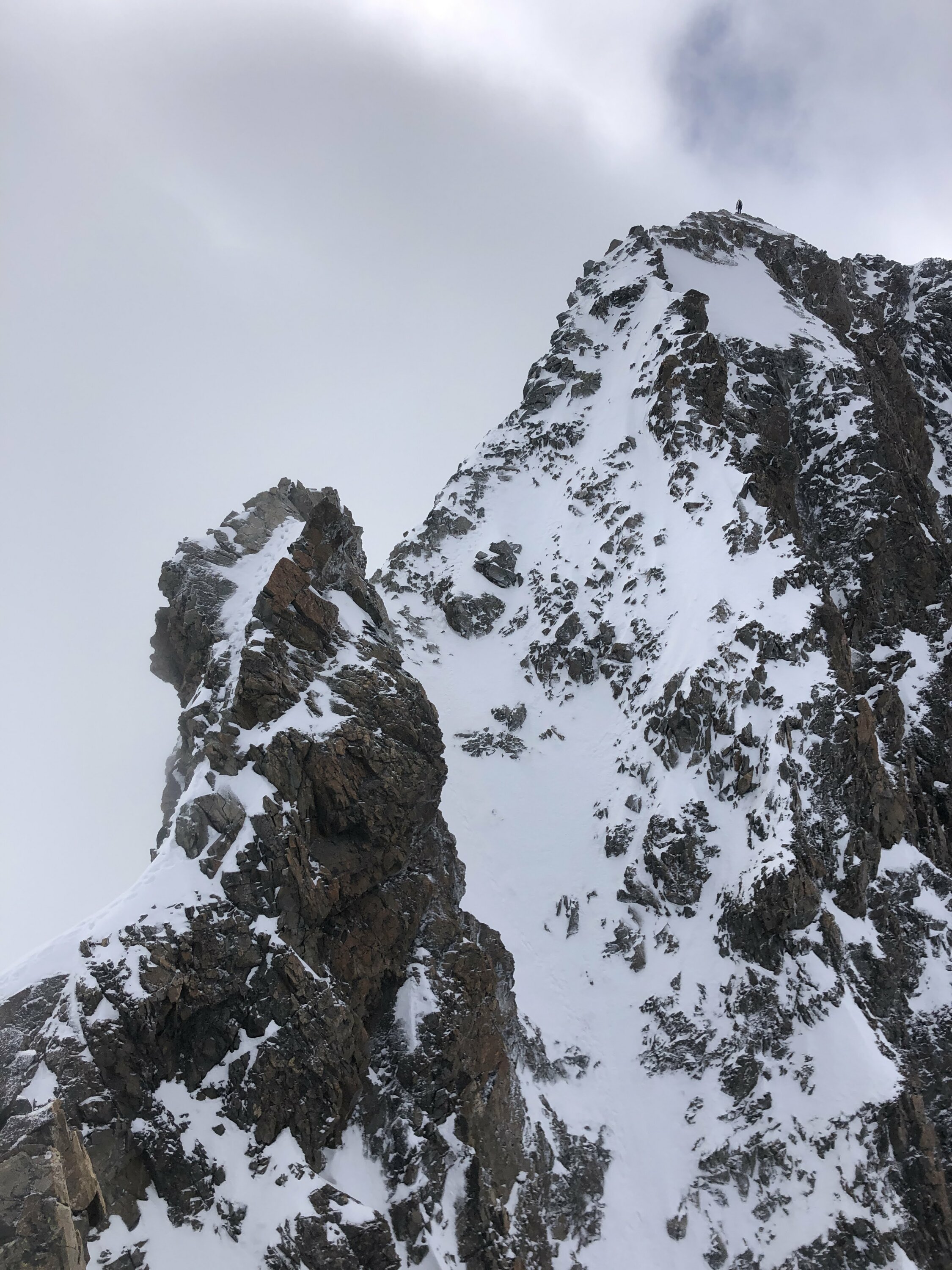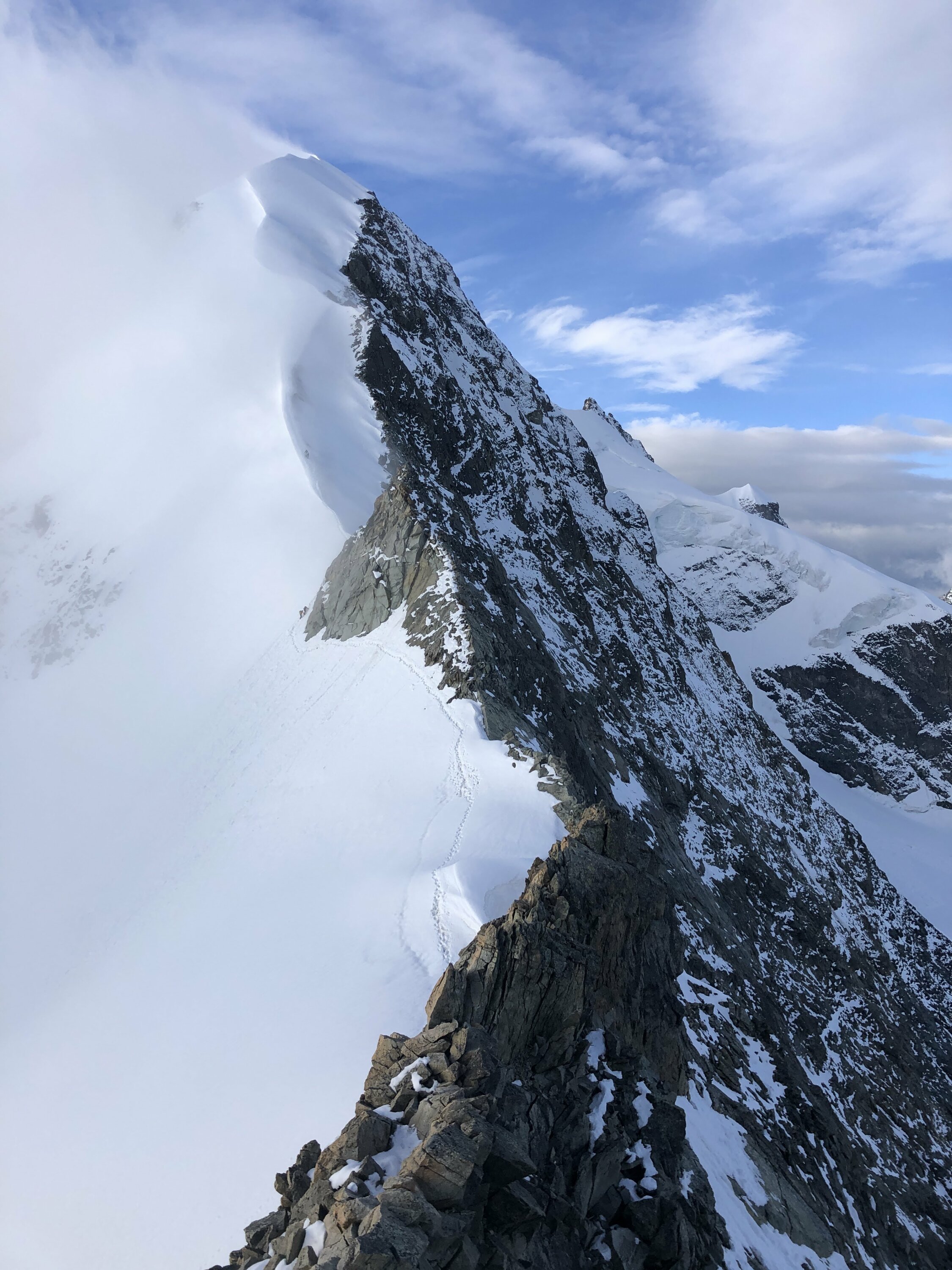 Der Wind hat eine Seilschaft zum umdrehen bewogen. Zwei andere Seilschaften sind weiter zur Marco e Rosa. Ich bin den Biancograt wieder runter abgestiegen.