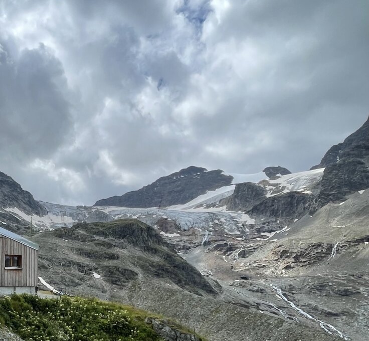Piz Buin Grond (3312m): von der Wiesbadener Hütte absteigend um die Grüne Kuppe