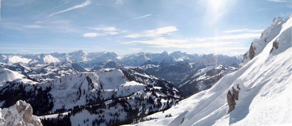 An Sonnenhängen bereits sulzig, am Schatten noch Powder, viel Wind.