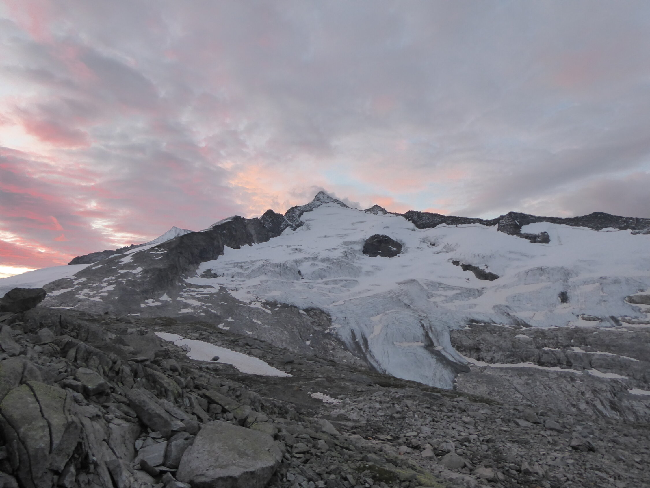 Nordostgrat Vor der Kürsinger Hütte dem markierten Steig folgend in Richtung Keeskogel (Normalweg - markiert)) bis auf eine Höhe von ca. 2820m. Hier verlässt man den Steig und geht weglos in Richtung ONO, um die Ausläufer des Südostgrates herum, bis man bei ca. 2900m die Gletscherzunge eines kleinen, namenlosen Gletschers erreicht.