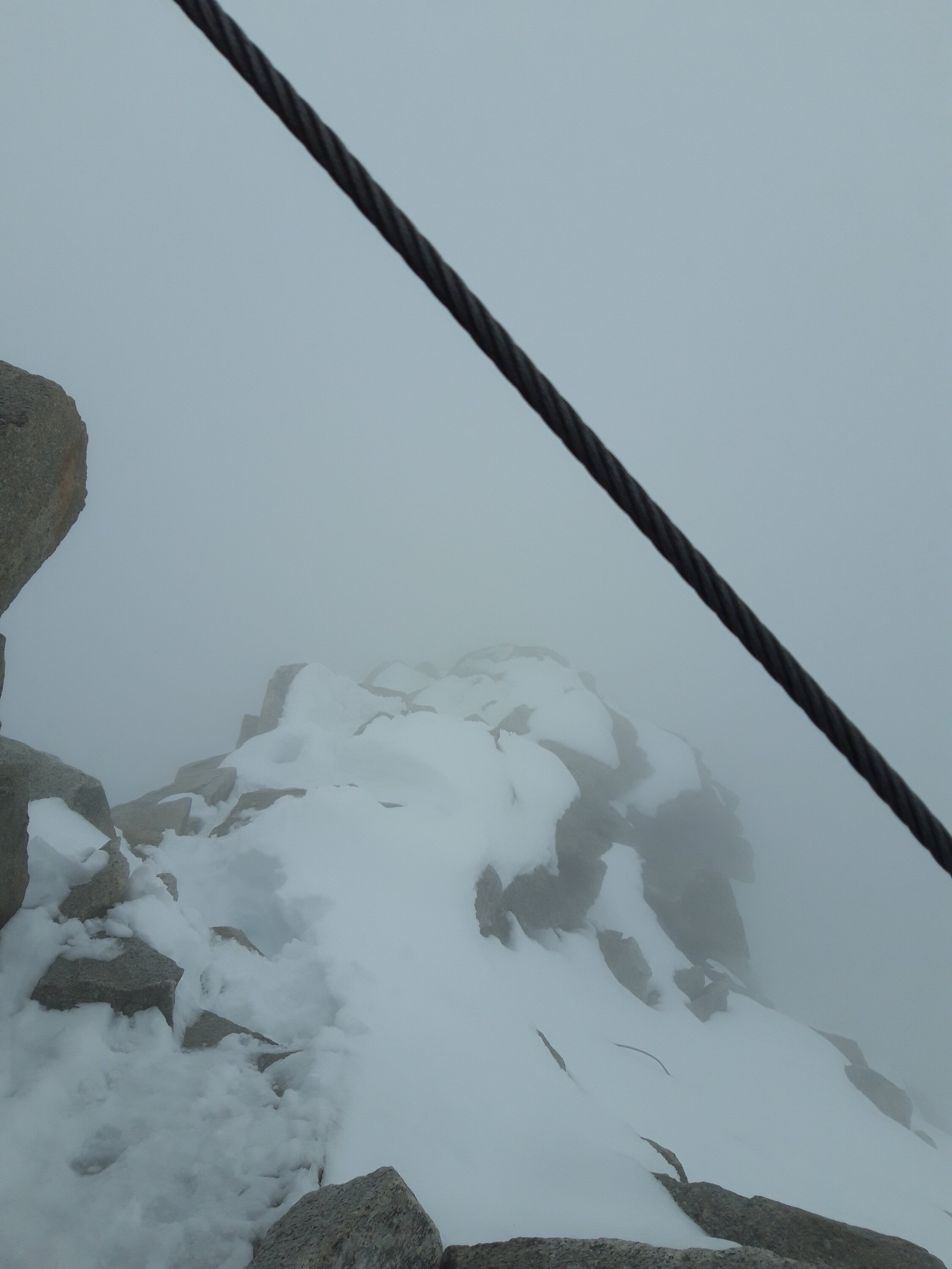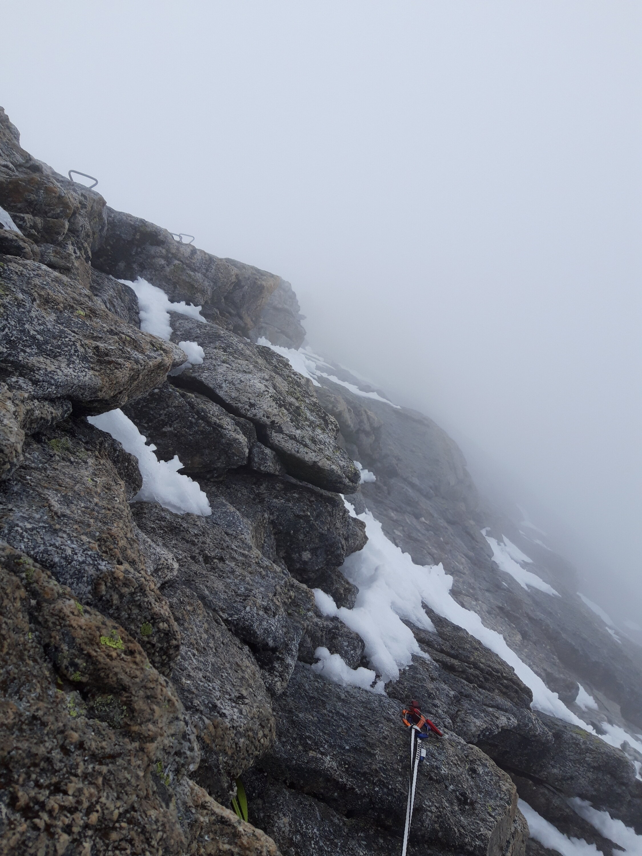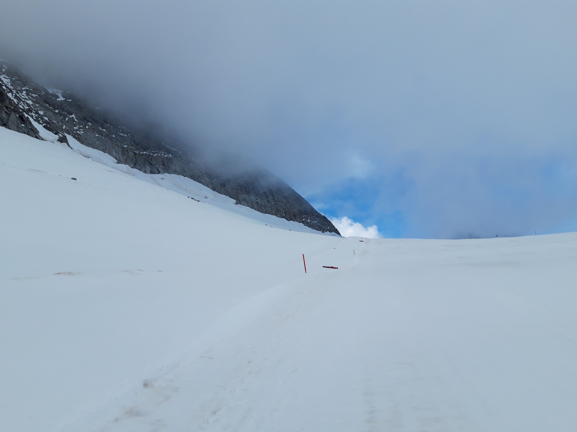 Auf beiden Graten teilweise Schneeauflage, die plattigen Stellen am Nordgrat waren meist Schneefrei. Beim Abstieg nach dem Schneegupf war die Wegfindung nicht ganz eindeutig. Lebhafter Wind.