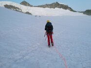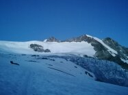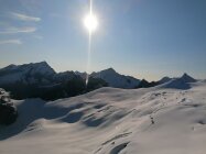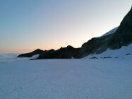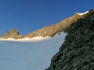 Der Schnee war auf dem Glacier de Moiry bestens gefroren. Auf dem NO- Grat war nordseitig ein Schäumchen Pulverschnee, der aber nicht störte. Wir sind den Grat mit den Steigeisen geklettert. Es empfiehlt sich, immer schön auf dem Grat zu klettern, hier sind die Felsen gut und fest.