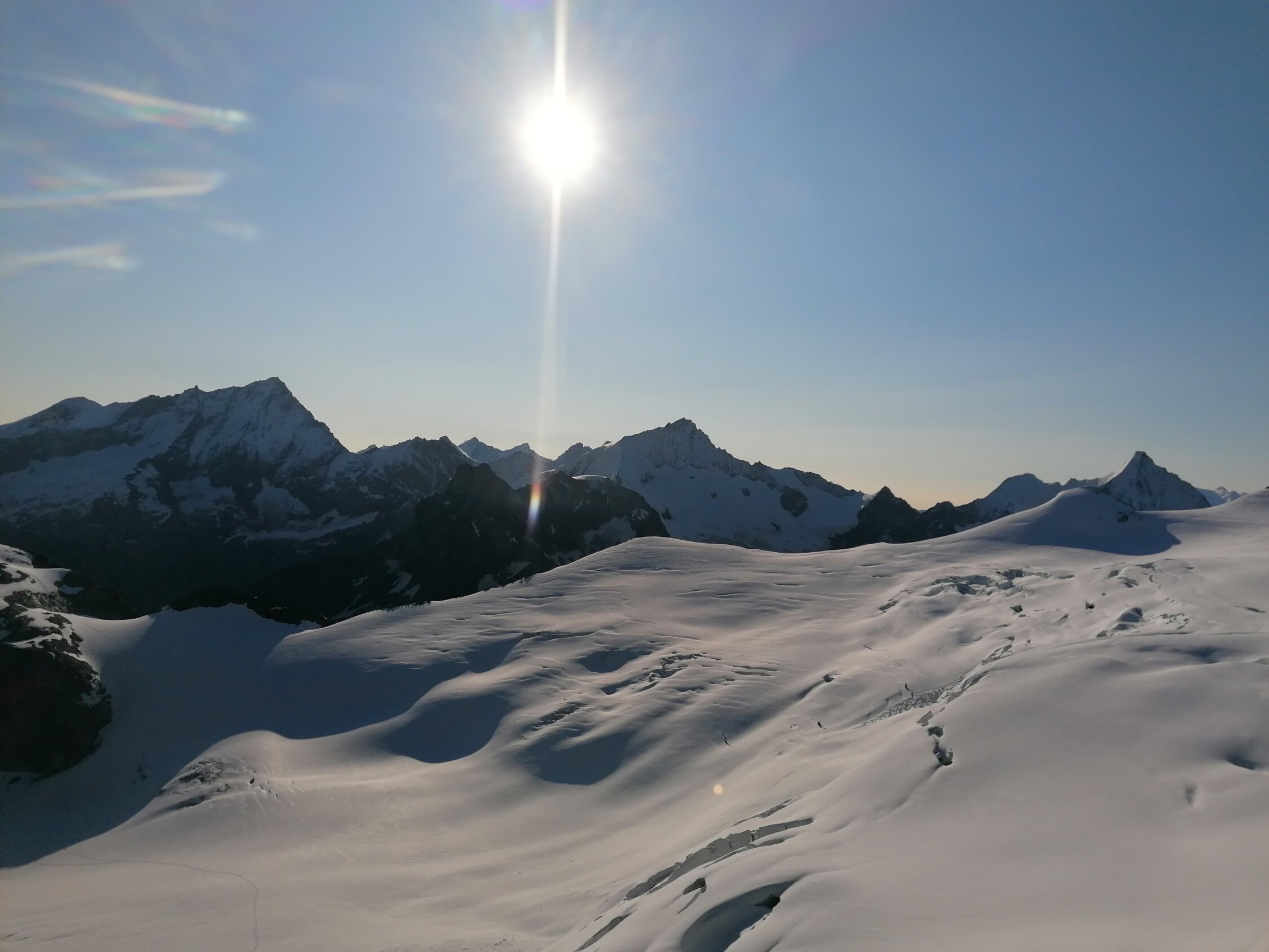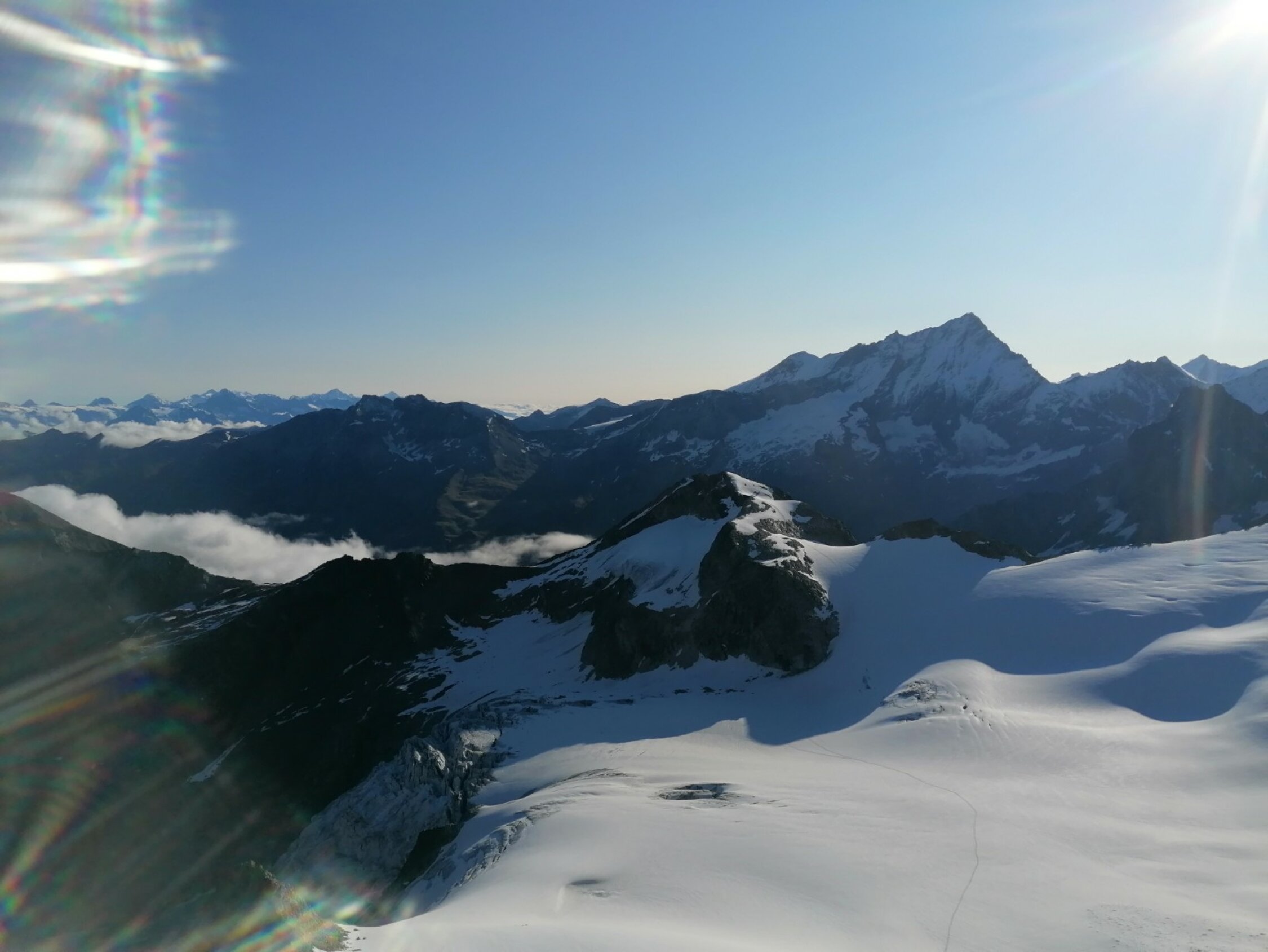 Ausgezeichnet. D.h. es war ein wunderschöner Hochtouren Tag. Ein angenehmer Wind ab und zu, und eine ausgezeichnete Fernsicht bis ins Mont Blanc Massiv und die Berner Alpen.