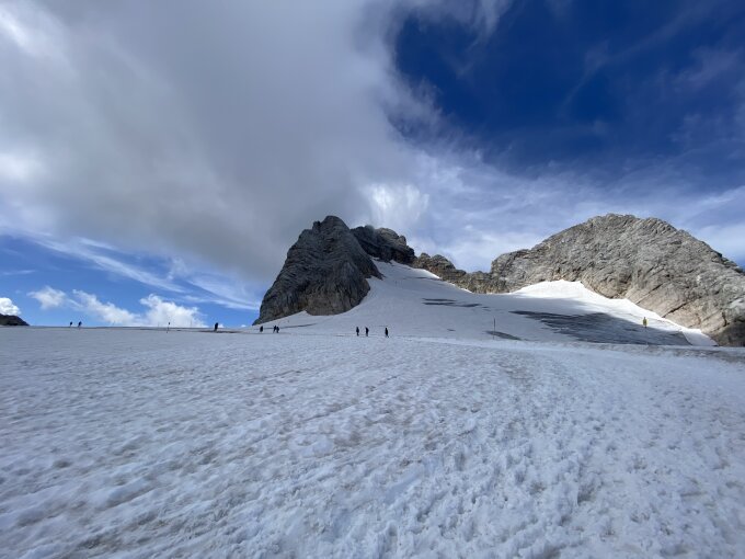 Da wir bei unserer ersten Dachstein Besteigung im Juli 2019 auf der Seethalerhütte reserviert und einen Bergführer gebucht hatten, waren wir zu wenig flexibel, was den Termin betrifft und bestiegen den Berg im Nebel.