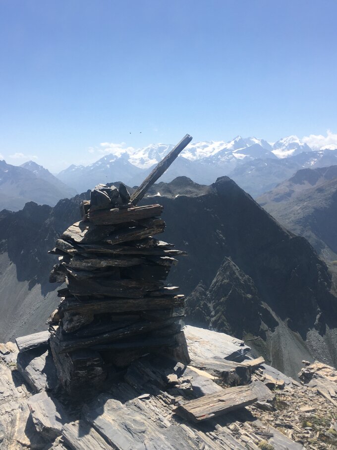 Start kleiner Parkplatz unterhalb Hospiz 2315 m, 13 Grad, windstill. Auf markiertem Wanderweg bis Fuorcla Zavretta, teilweise steil und geröllig, ab Fuorcla Zavretta auch markierter Weg, unschwierig. Tolle Fernsicht auf dem Gipfel. Abstieg ab Fuorcla Zavretta rutschig und geröllig, teilweise weglos, aber markiert. T3+.