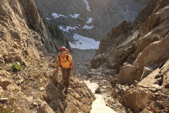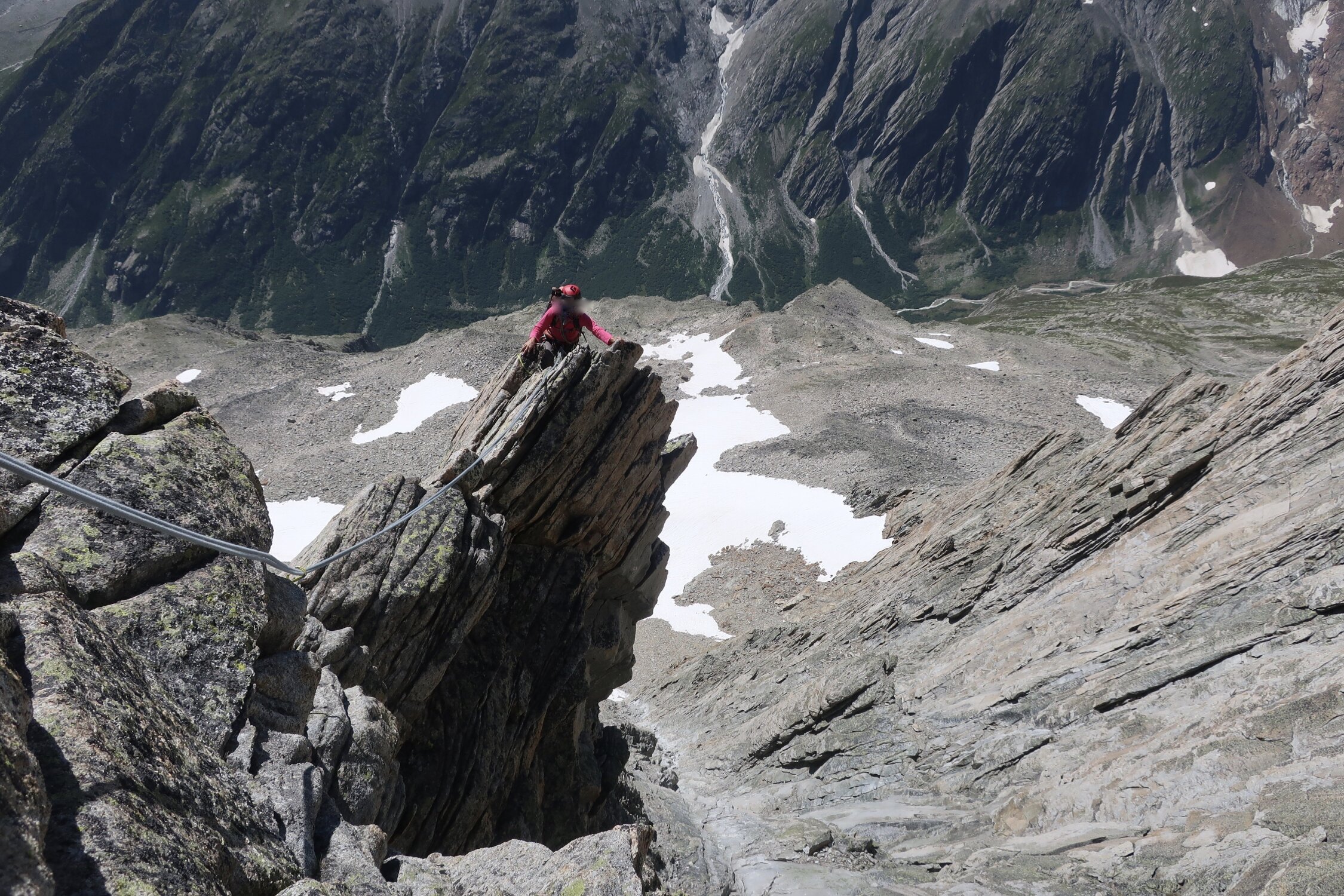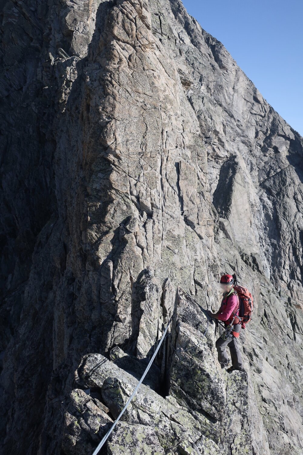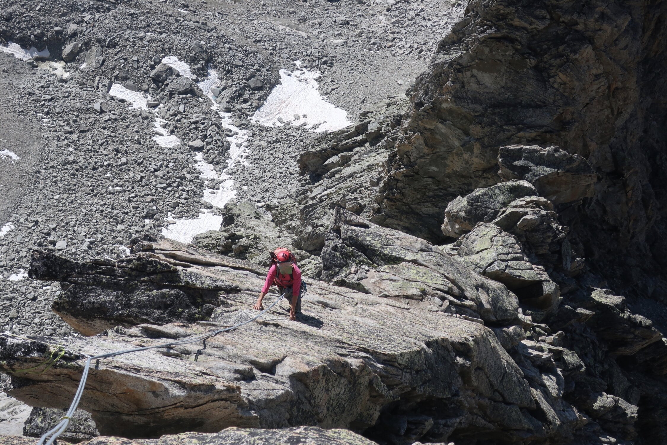 Achtung: Im Abstieg wurde im Coulouir eine neue Abseilpiste eingerichtet und markiert: 2x25m, dann 60Meter Gehgelände markiert, dann 3x25m abseilen