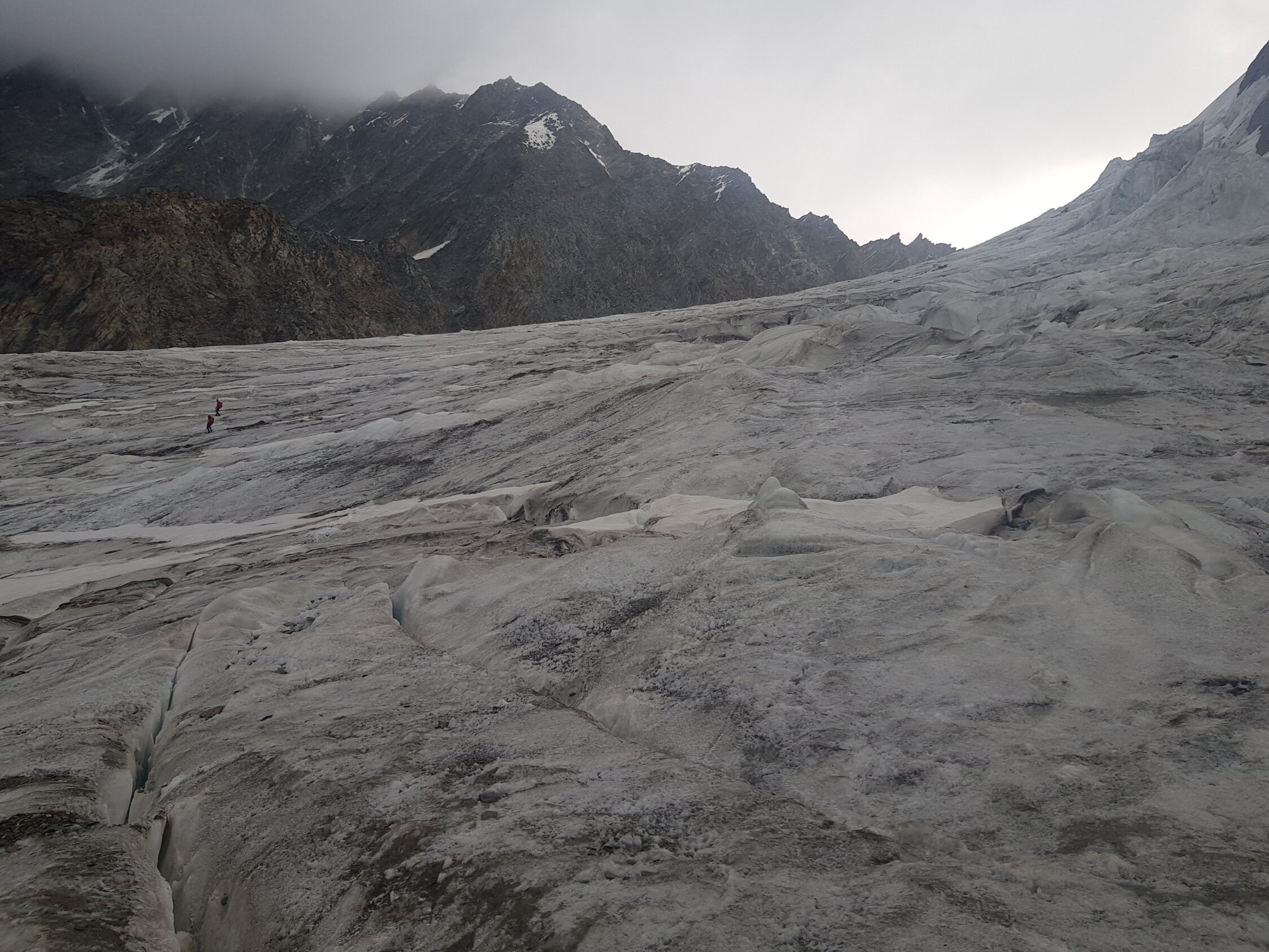 Abstieg durch den Weingartengletscher Sonntag gut, da gefroren. Bei warmen Temperaturen sicher spannend, teilweise mehr Spalten als Gletscher.