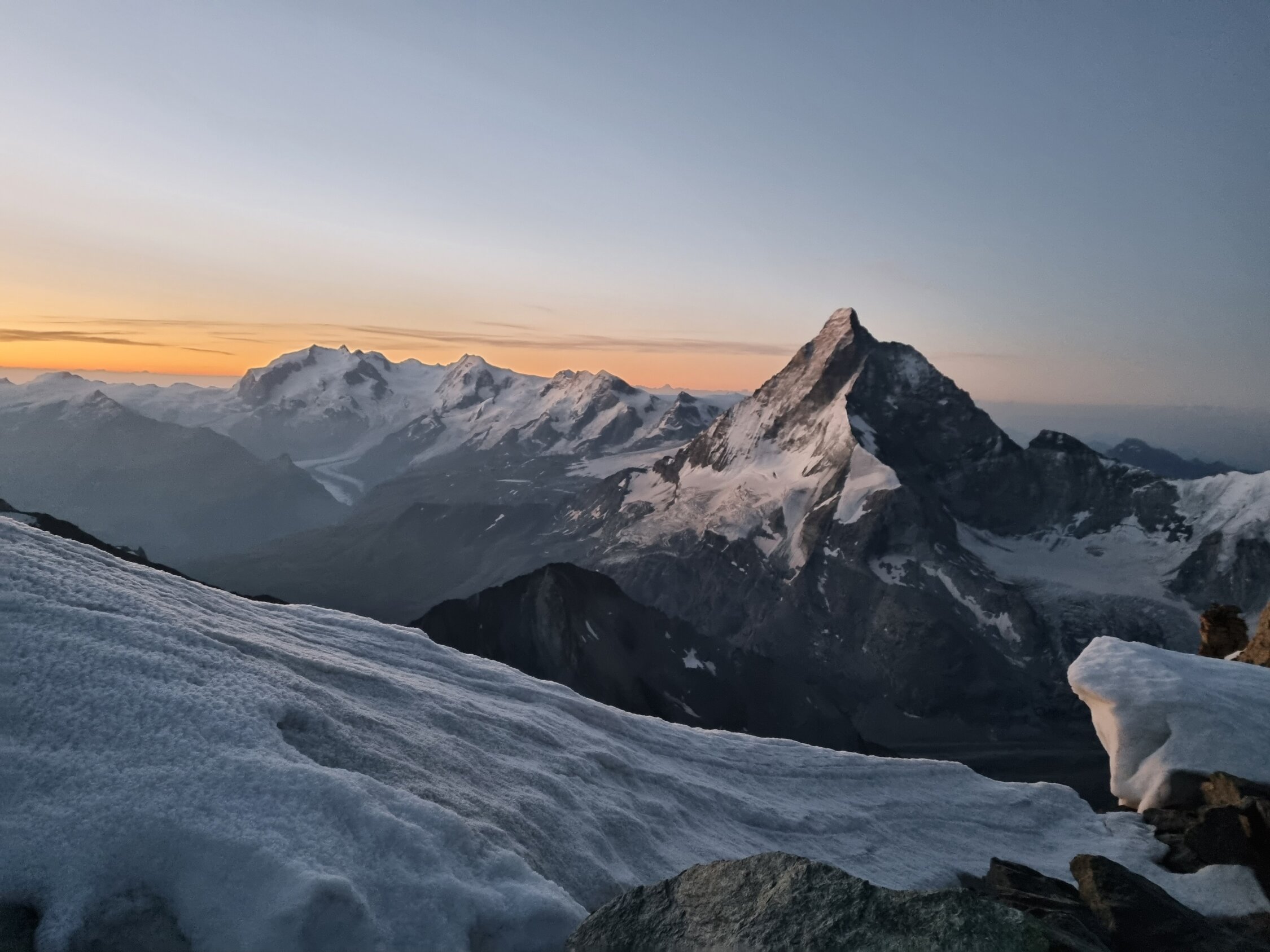 Top Verhältnisse, trockener Fels, guter Trittschnee ( cave Gletscherspalten kommen durch), die letzten Meter zum Gipfel können auch gut ohne Steigeisen gemacht werden. Die Rinne links vom gr. Gendarm ist auch eisfrei. Super Bewirtung in der Hütte ( Danke!).