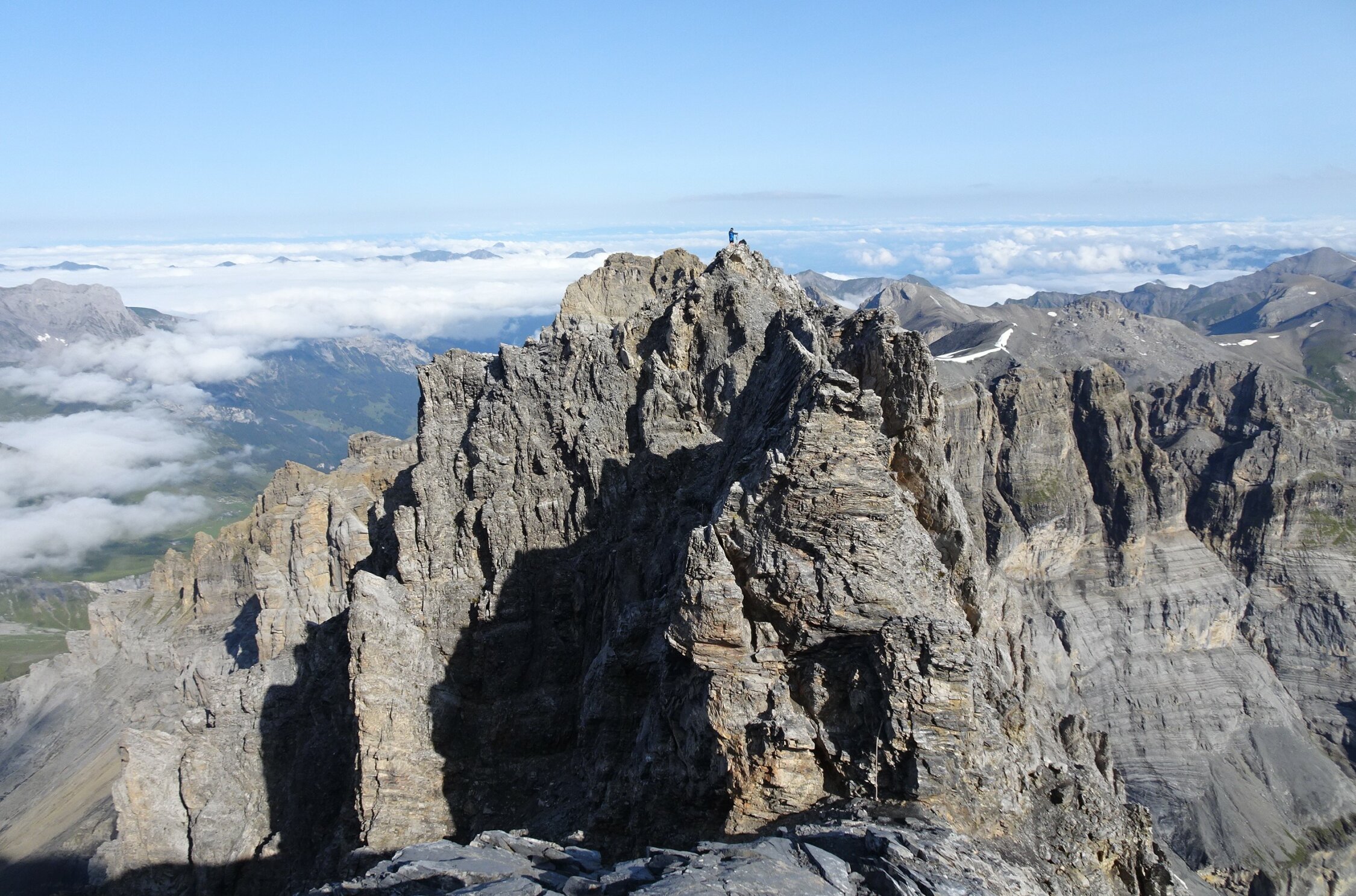 Gspaltenhorn (Normalroute): perfekte Verhältnisse, schnee- und eisfrei. Fixseile in bestem Zustand.