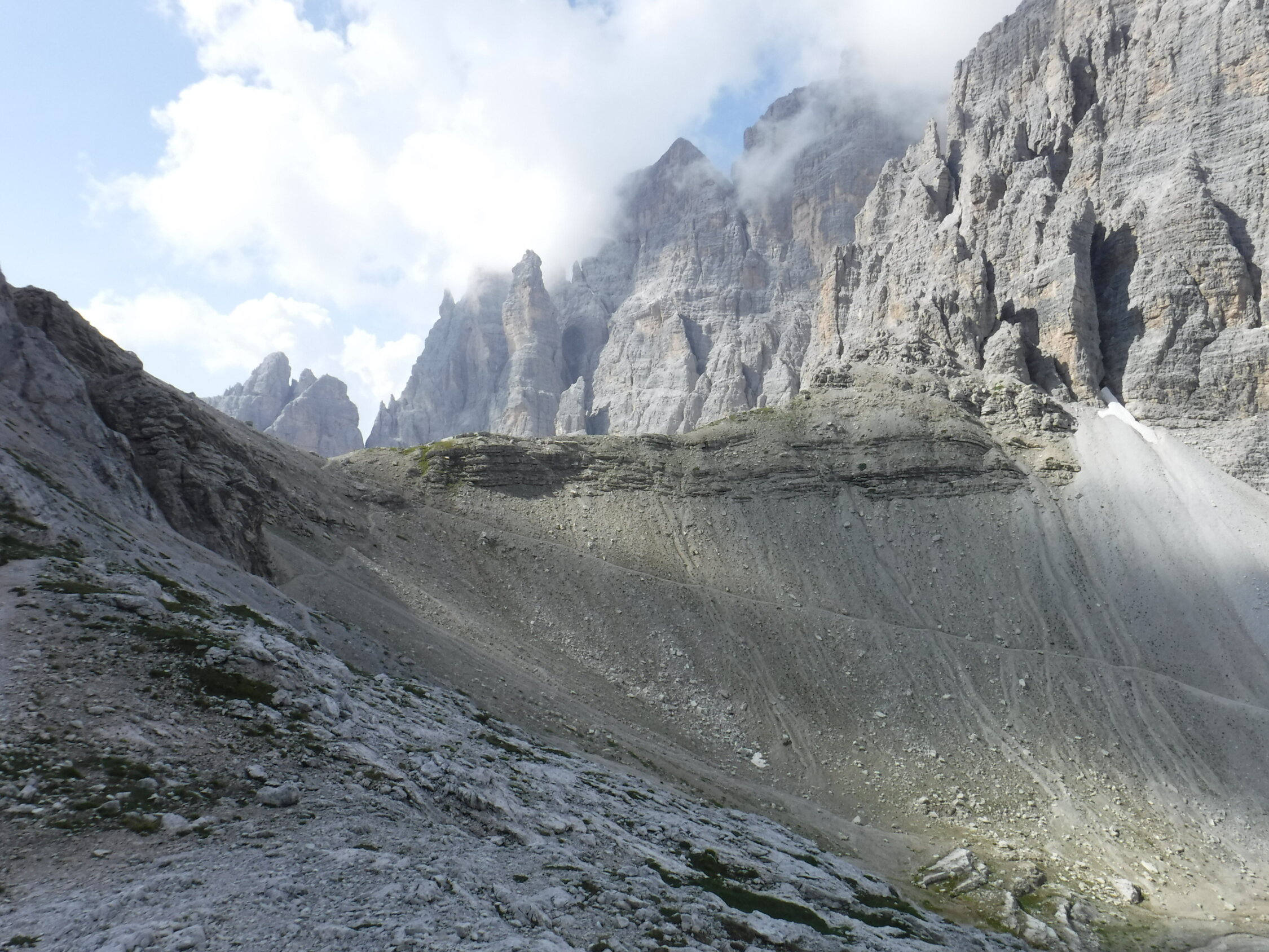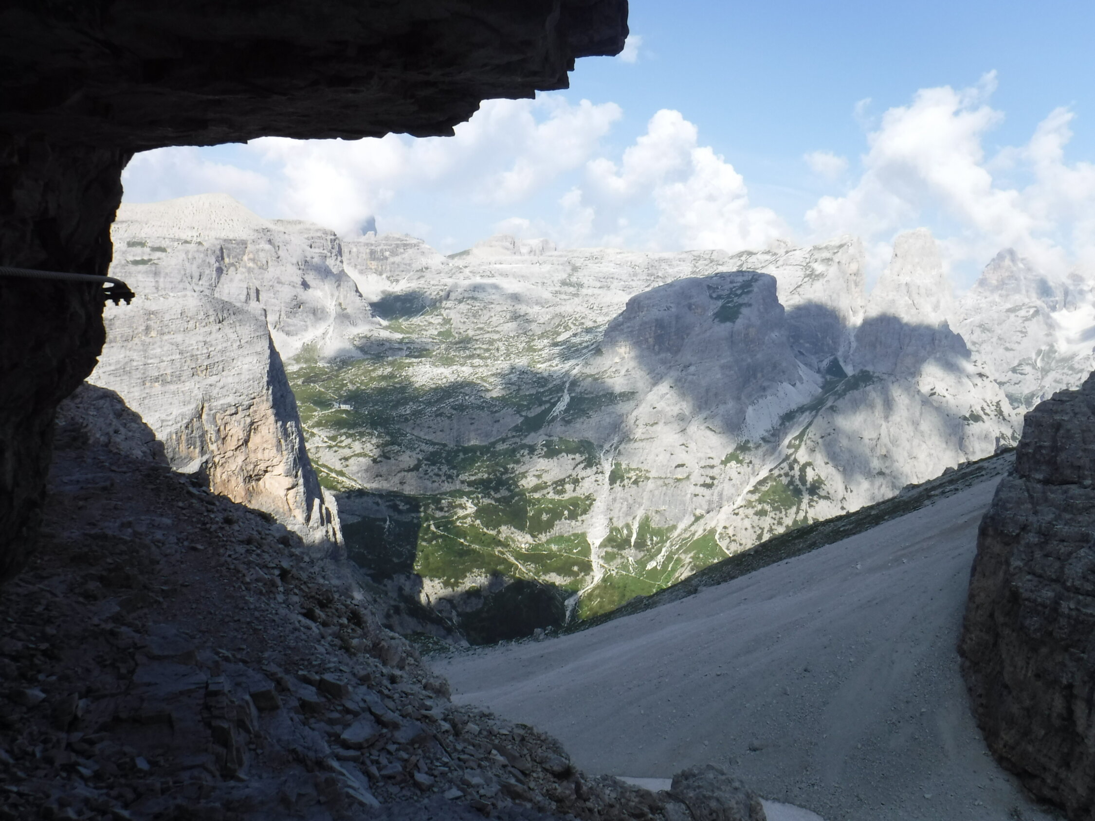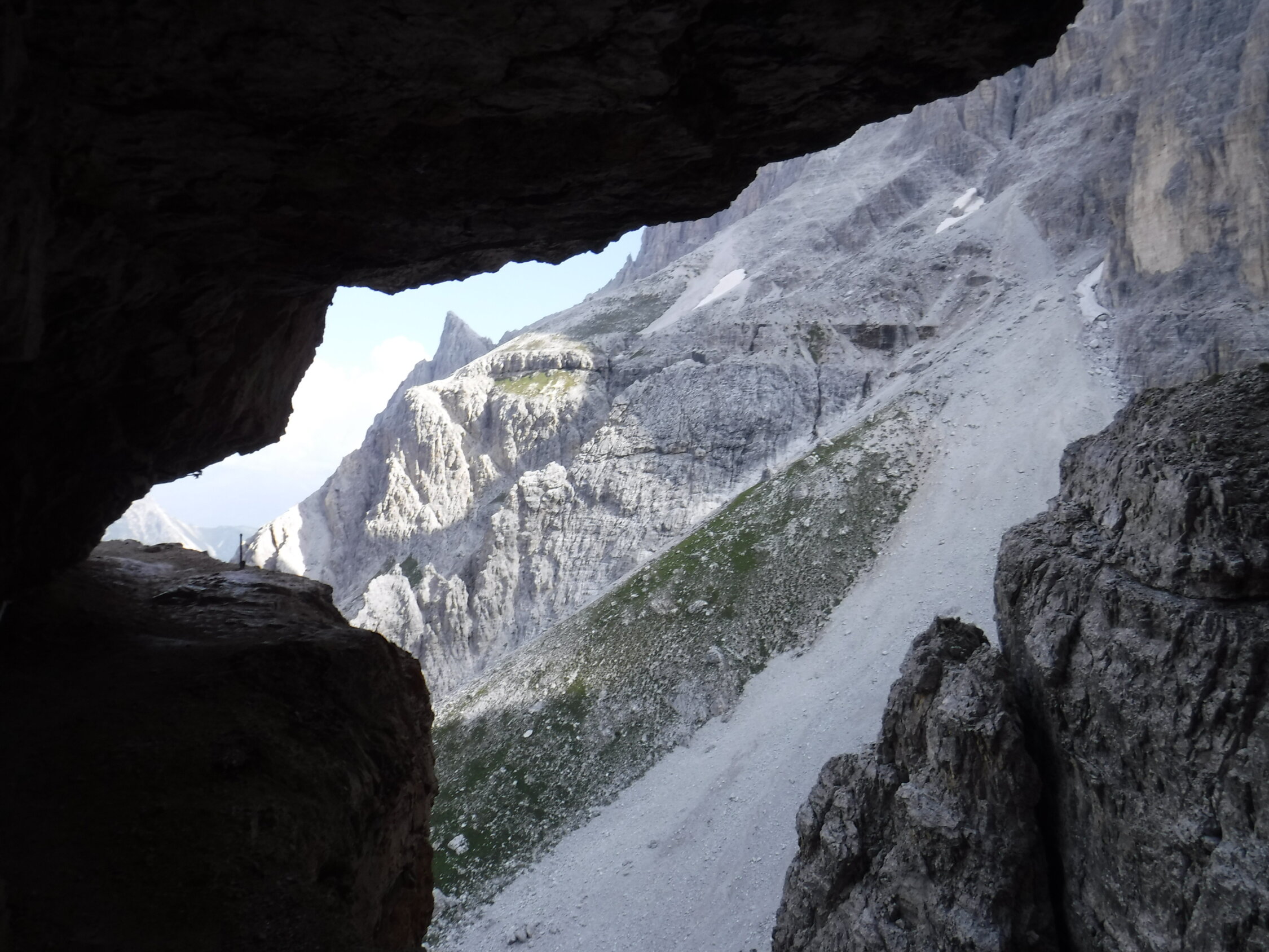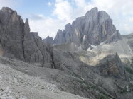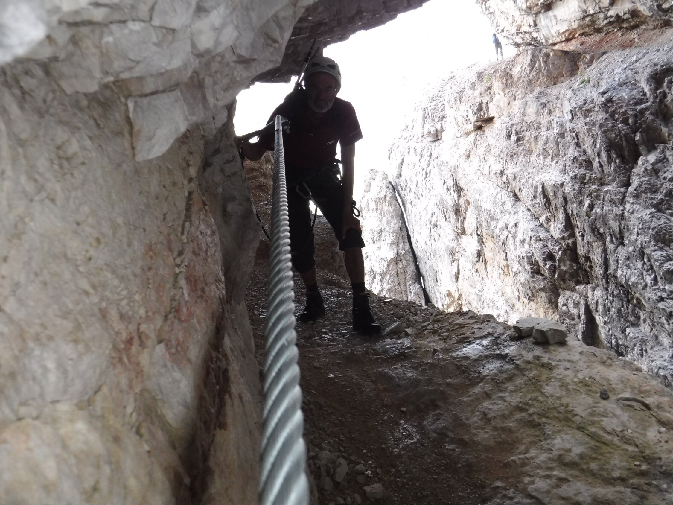 Fortsetzung der Tour dann über die Via Ferrata Cengia Gabriella und Via Ferrata Roghel Sud + Nord über die Rif. al Popera A. Berti und Rif. Selvapiana I. Lunelli zurück zum Kreuzbergpass.