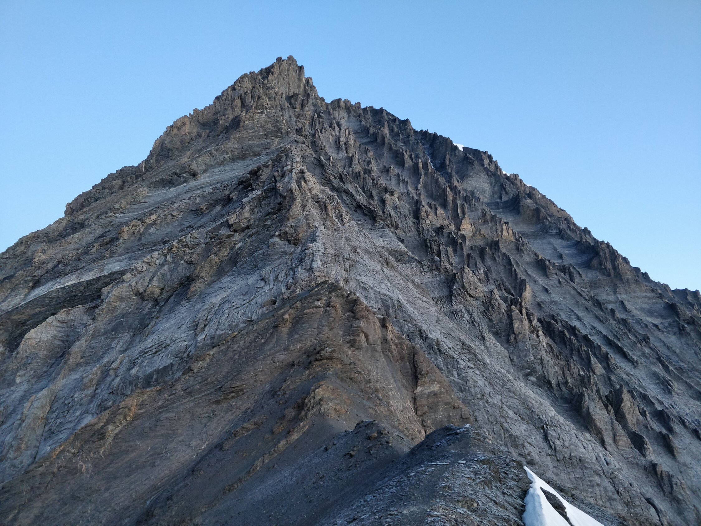 Abstieg über Zackengrat sehr gute Verhältnisse für die Jahreszeit: Kein Blankeis, W-Flanke im oberen Teil noch griffig. Schneefelder im Steilhang unterhalb P. 3034 angenehm weich, ermöglichten zügigen Abstieg.