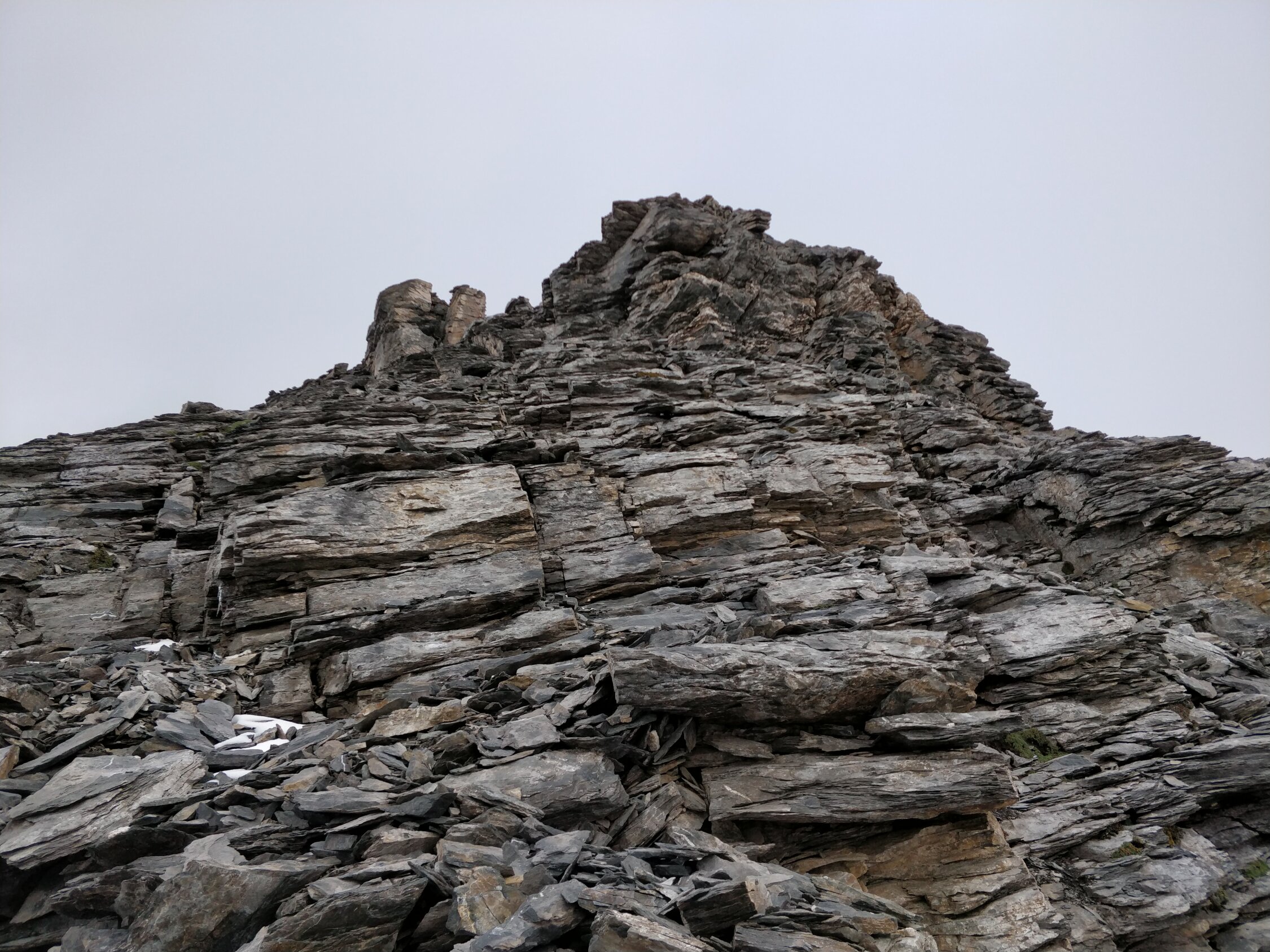 Die überwiegend positiven Berichte über diese Route konnten wir nicht ganz nachvollziehen. Ja, die Tour ist landschaftlich reizvoll und einsam. Andererseits hält sich das Klettervergnügen ob des unglaublich brüchigen Felses sehr in Grenzen. Die Kletterei ist nie schwer, aber oft müssen exponierte Passagen mit mehr als zweifelhafter Felsqualität ohne zuverlässige Sicherungsmöglichkeit geklettert werden.