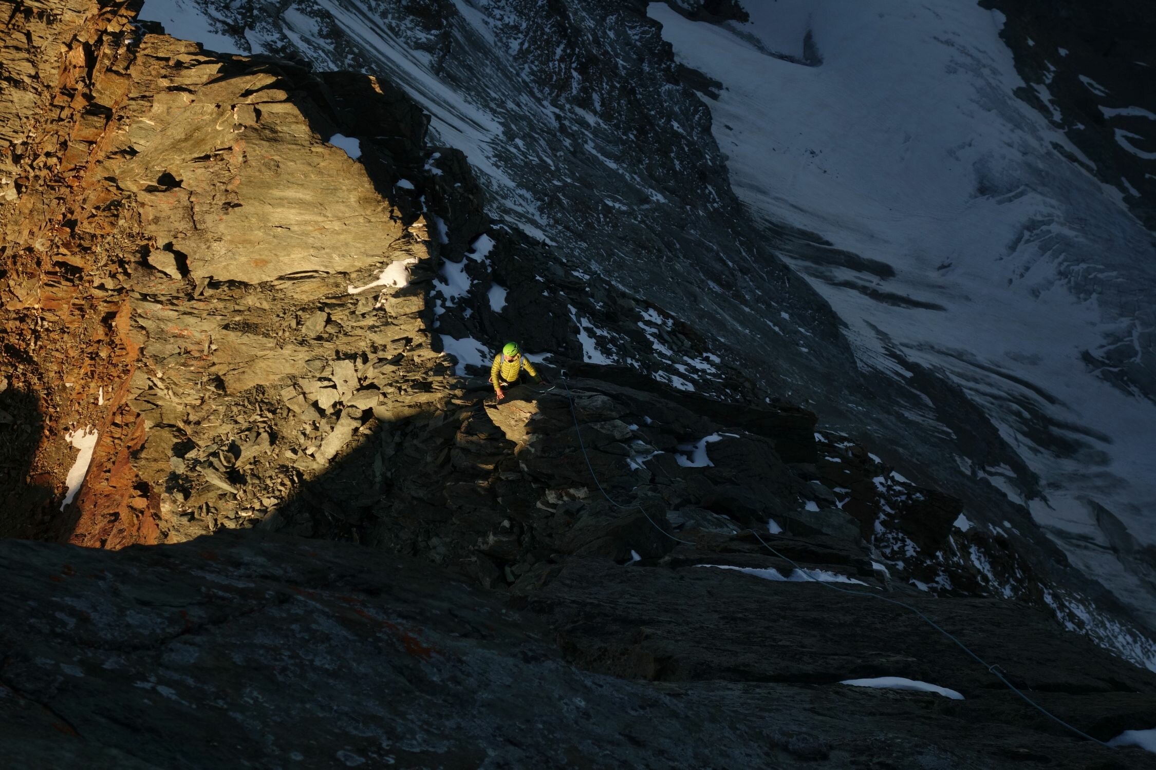 - Aufgrund von Wolken am Nachmittag taut es westseitig kaum, während in den frühen, klaren Morgenstunden die Sonne die Ostflanken noch ausreichend erwärmt. Am Vortag wurden 3 Seilschaften am Obergabelhorn vom Arbengrat ausgeflogen. Grund war langsames vorankommen aufgrund von vereisten Felsen.