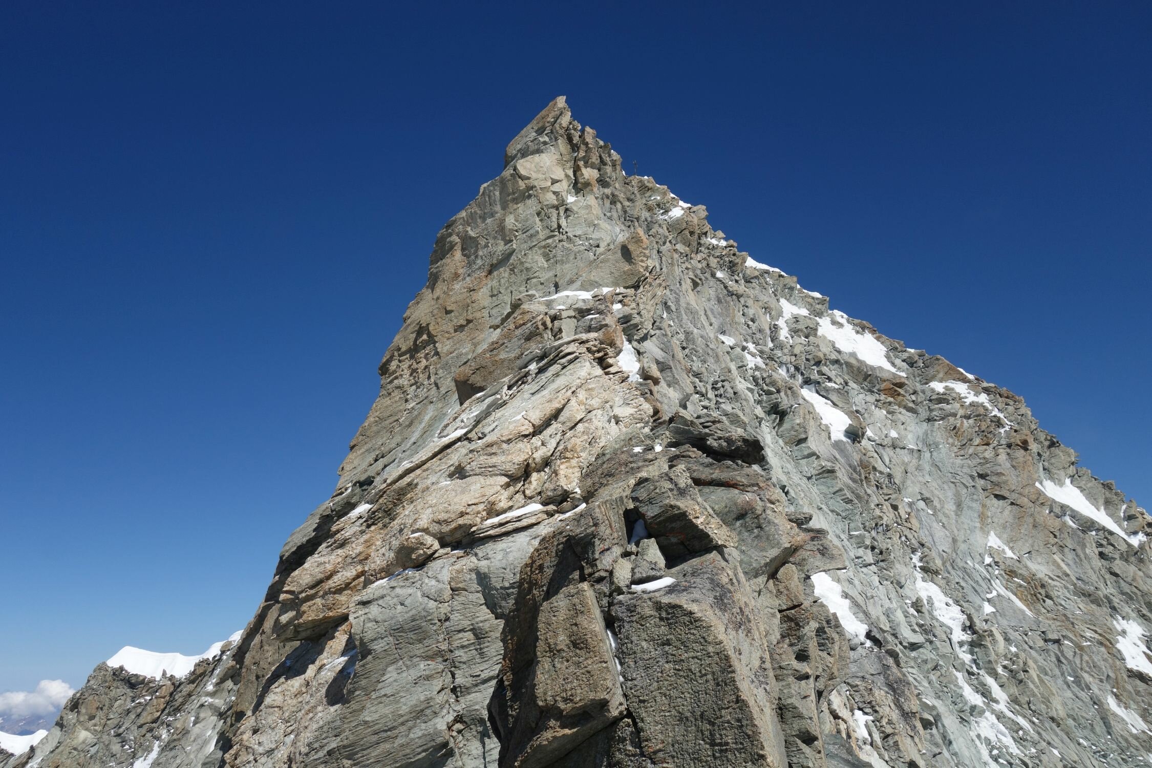 Zur den Zeitangaben: Die Tour sollte nicht unterschätzt werden: ich habe vor 10 Jahren den Schaligrat als meine erste grosse Grattour gemacht: das hat damals ganze 12h gedauert (statt 5h wie im SAC Führer). Heute waren wir gemütlich unterwegs und haben relativ viel durchgesichert. Inklusive Pausen haben wir knapp 8h gebraucht (6:30h Start am Biwak, 14:30 am Gipfel, 14:45 Uhr Abstieg, 18:30 Hütte). Bei konsequentem am laufendem Seil Gehen ist man sicher noch ein gutes Stück schneller. Ob man ein laufendes Seil bei den steilen und teilweise losen Felsen verantworten will, das muss jeder für sich selbst entscheiden.