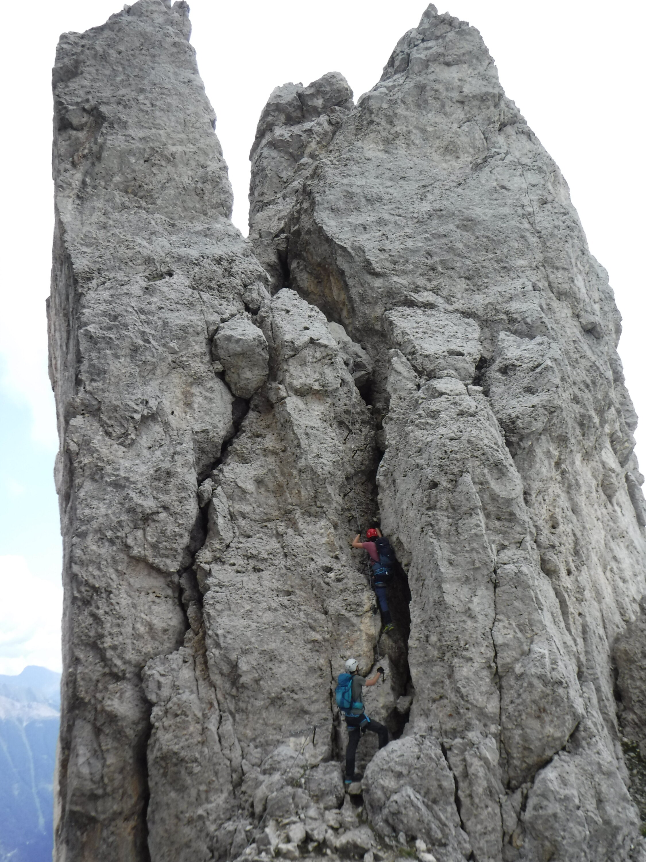 Lange, aussichtsreiche Runde in der südlichen Rosengartengruppe. Gehört zur unschwierigen „Parade-Tour“ in den Dolomiten. Der Masaré – und der Rotwand – Klettersteig ist dann in der Sommerferienzeit stets viel besucht. Der Majaré-Klettersteig dürfte zu den schönsten Steigen in den Dolomiten zählen. Ggfs. Steigeisen einpacken für die „Eisrinne“ im Santnerpass-Klettersteig.