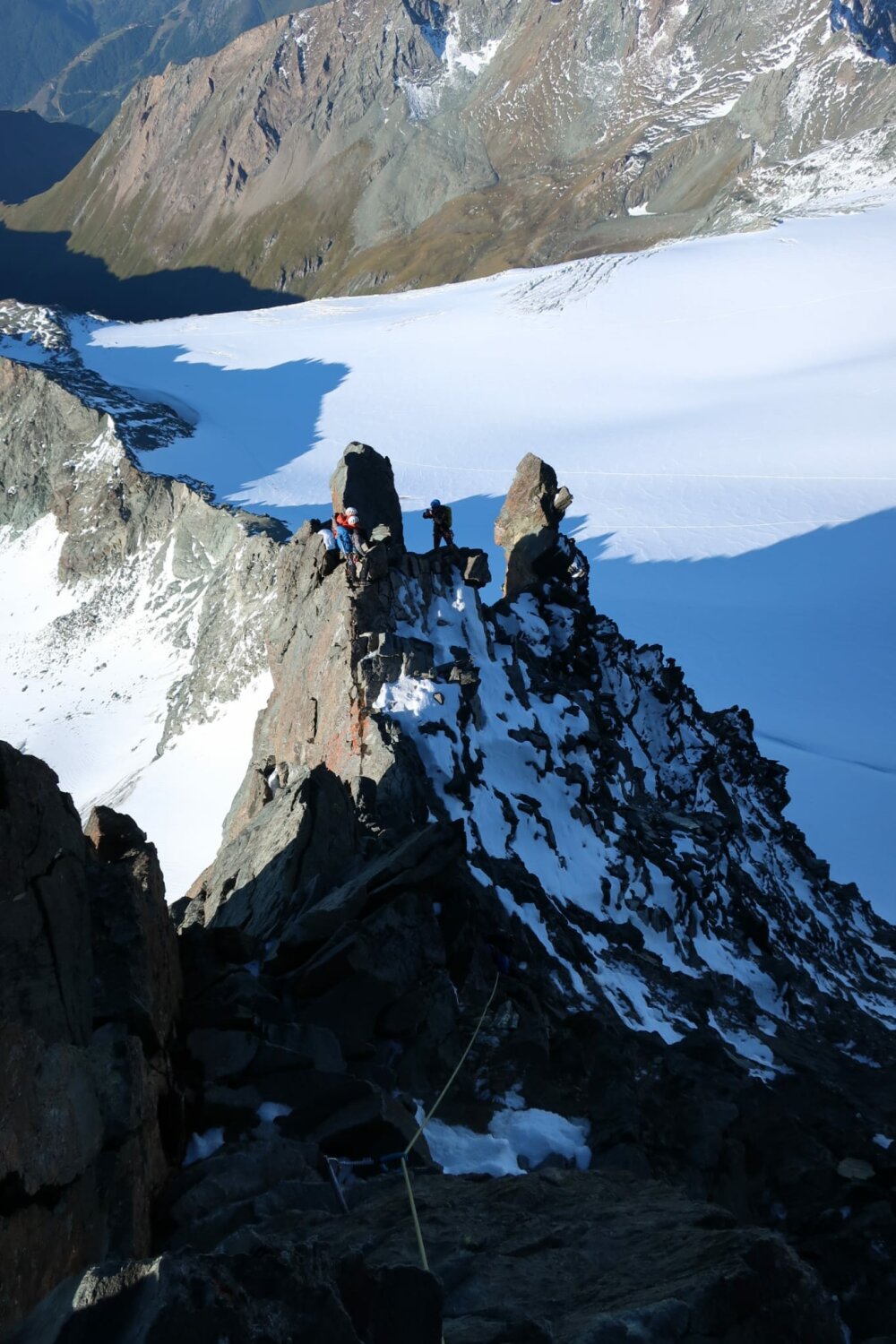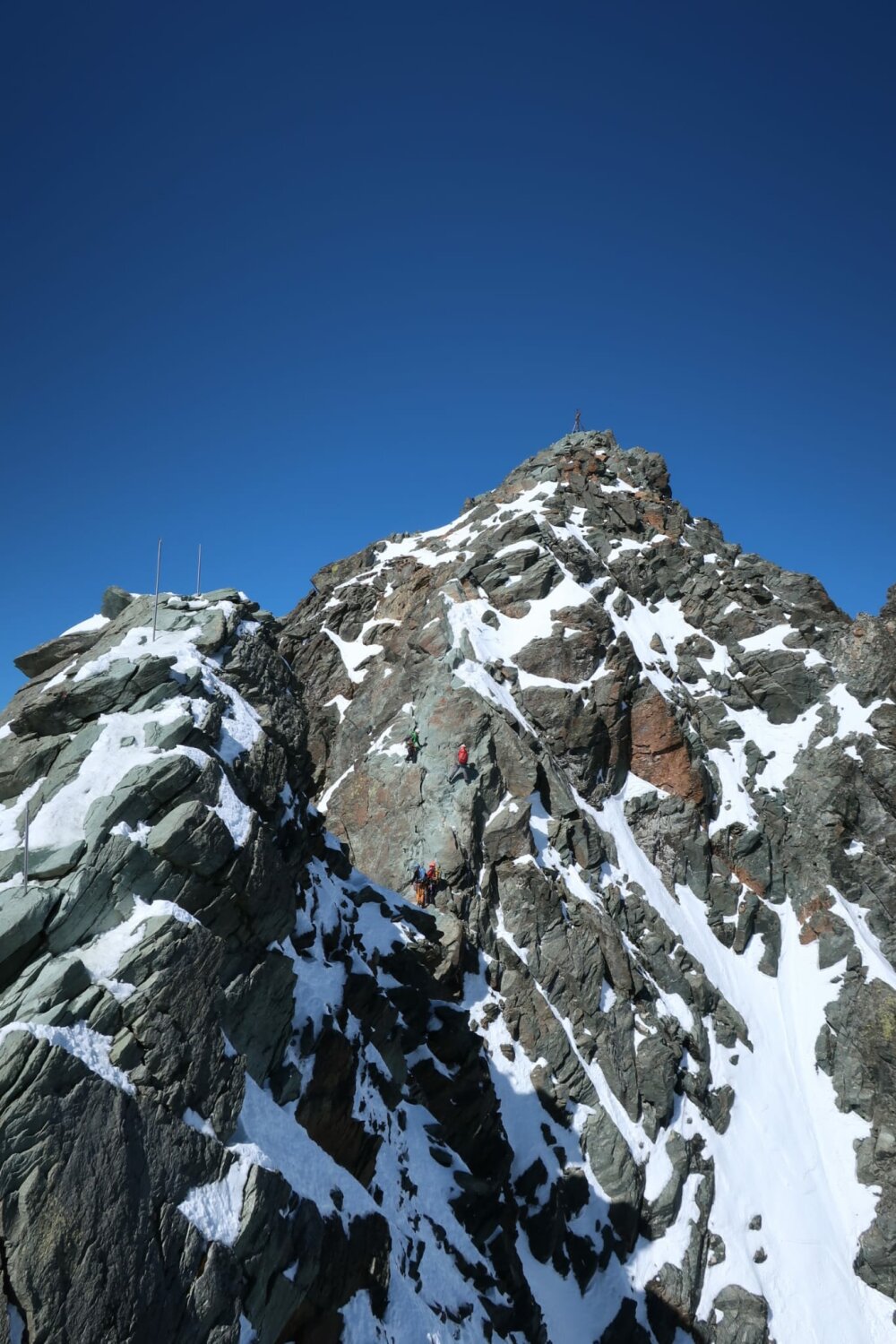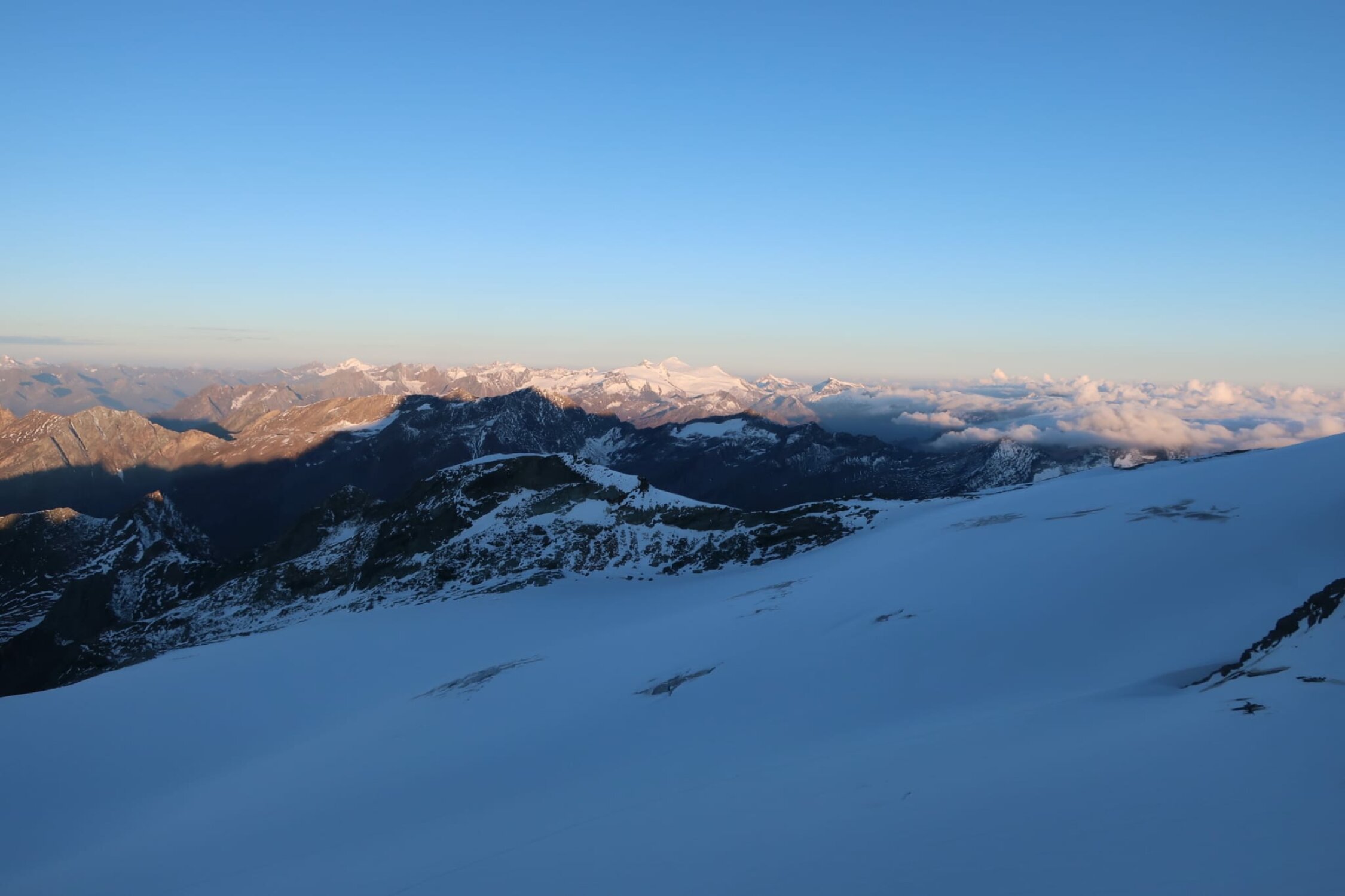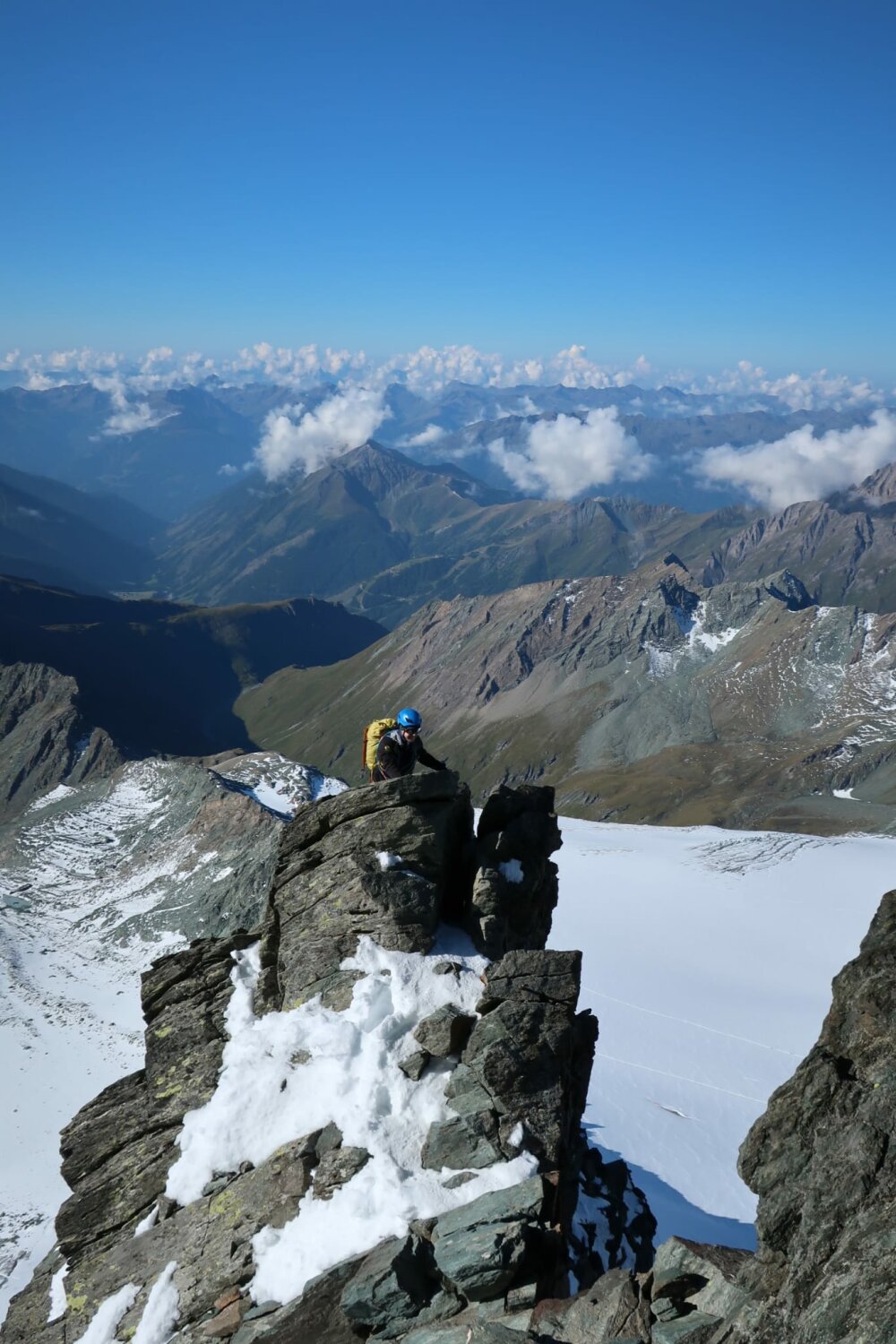 Am Gipfel windstill und traumhaftes Wetter. Abstieg über Kleinglockner noch teils im Firn, der sich aber nicht mehr lange halten wird.