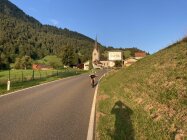 Am Morgen war es für die MTB-Etappe angenehm kühl. Ansonsten schönes und ruhiges Spätsommer-Wetter bei mildern Temperaturen. In der Gegend ist man eher einsam in einer malerischen Bergwelt unterwegs.