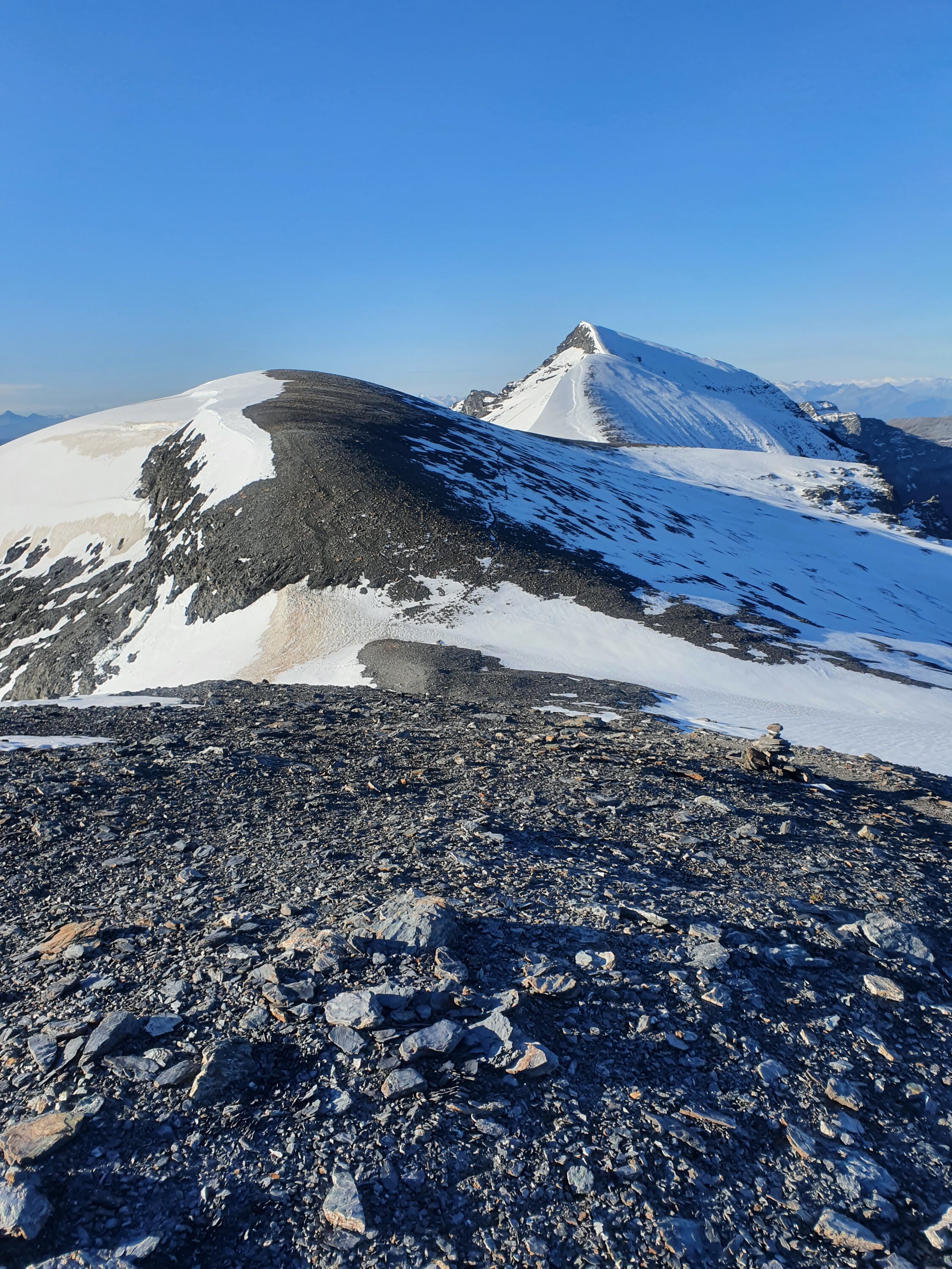 Wir sind wieder ins Surenjoch zurück. Es gab Spuren vom Surenjoch Richtung Sardonapass und Sardonagletscher (frühere Normalroute). Wir wären gerne so über den Schnee abgestiegen, um uns das Abklettern und Absteigen über den felsigen Mittelgrat zu ersparen. Da wir aber über unser Depot am Ausstieg vom Mittelgrat mussten, konnten wir diese Route nicht wählen. Allerdings riet uns Hüttenwart Beat, den wir unterwegs antrafen, auch sehr von dieser Variante ab. Insbesondere der Übergang vom Segnasgletscher auf den Felssporn, der ihn vom Sardonagletscher trennt, sei oft sehr heikel. Diesen Teil der Route konnten wir nicht einsehen und daher nicht beurteilen, sodass ich mich freuen würde über Verhältnisberichte von Personen, die diesen Abschnitt vor kurzem gegangen sind.
