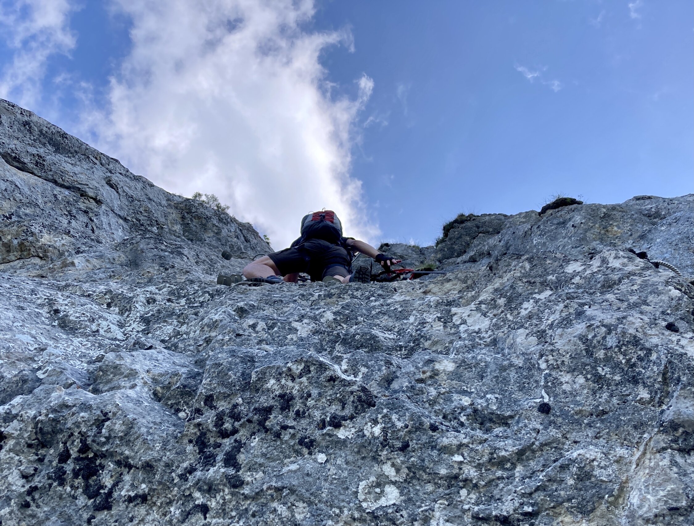 Zustieg unterhalb der Wand etwas matschig, Fels jedoch trocken und griffig.