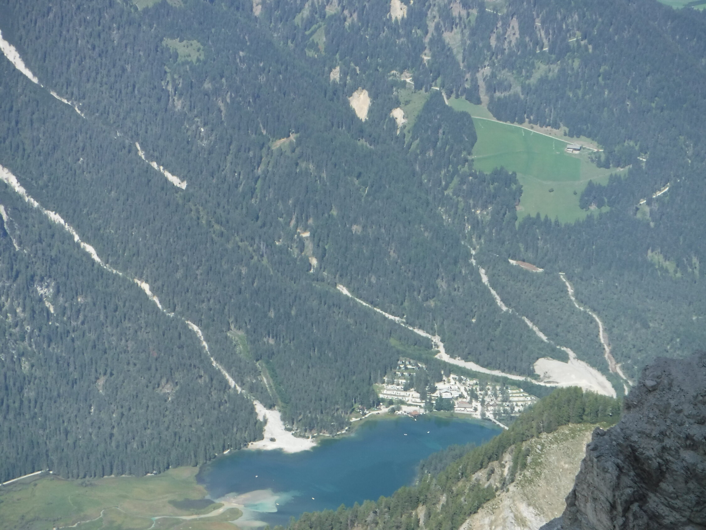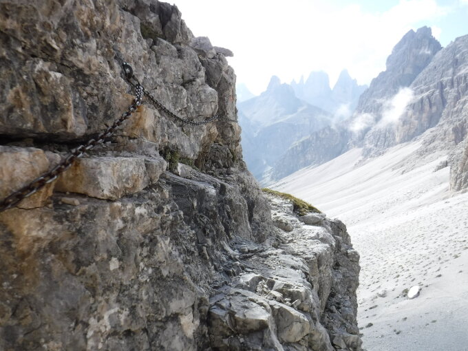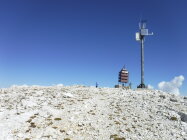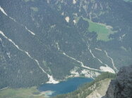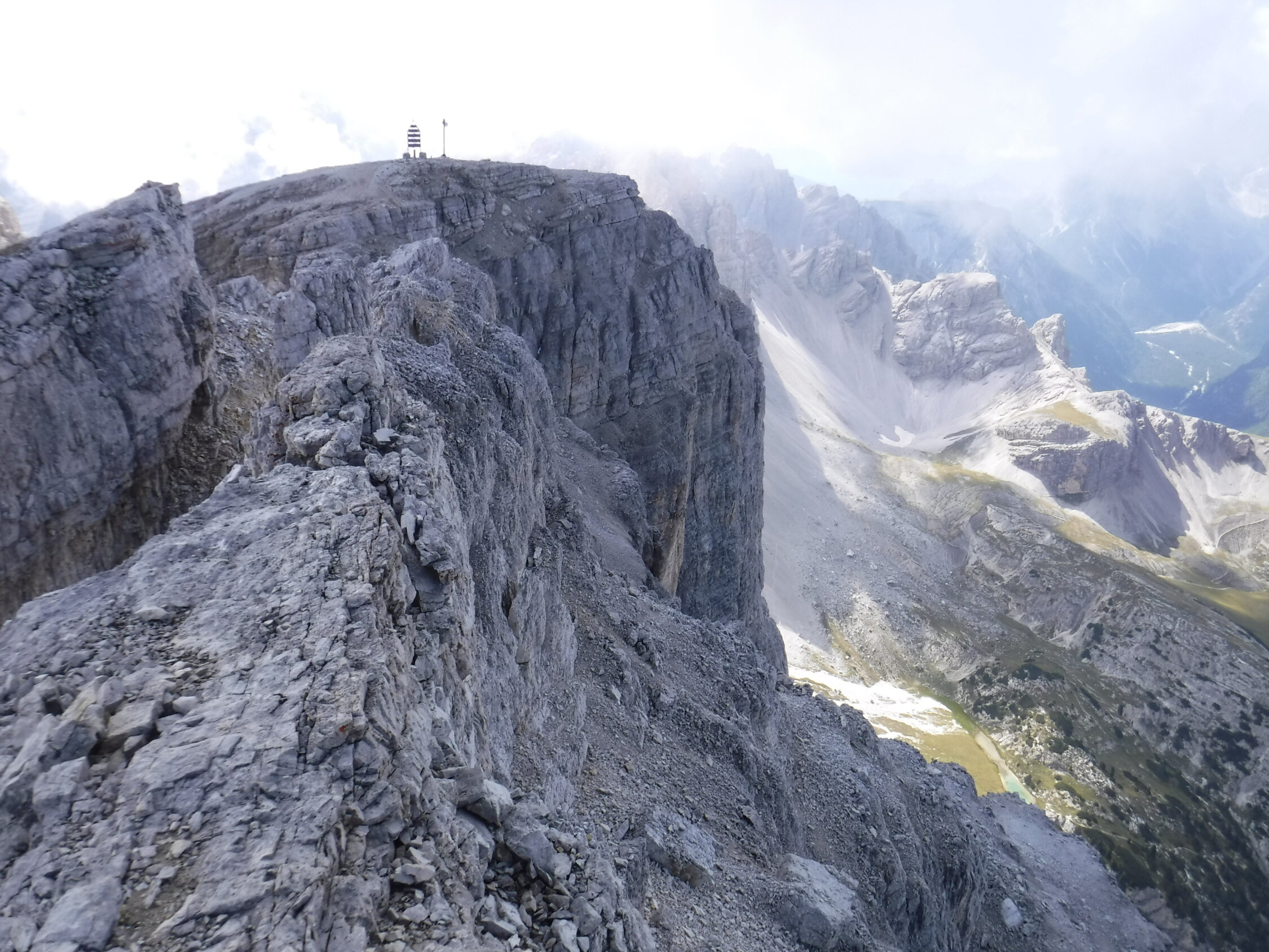 Vom Gipfel hat man Aussicht über das Drei-Zinnen-Gebiet und hinunter zum Toblacher See.
