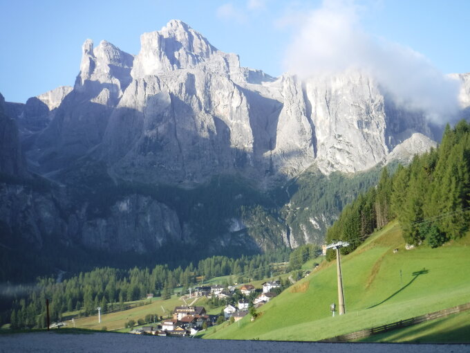 Vom Gipfel blickt man hinab ins Gadertal, in den Talkessel von Corvara, aus dem Pass-Straßen zum Grödner Joch und zum Campolongo hinaufführen. Im Südwesten hat man die Sella vor sich mit Blick ins Mittagstal (Val de Mesdì). Links von der Sellagruppe erblickt man die Marmolada. Und weiter links Zoldano, Civetta und Pelmo, sowie den Antelao mit seiner typischen Schräge. Im Norden sieht man den Alpenhauptkamm.