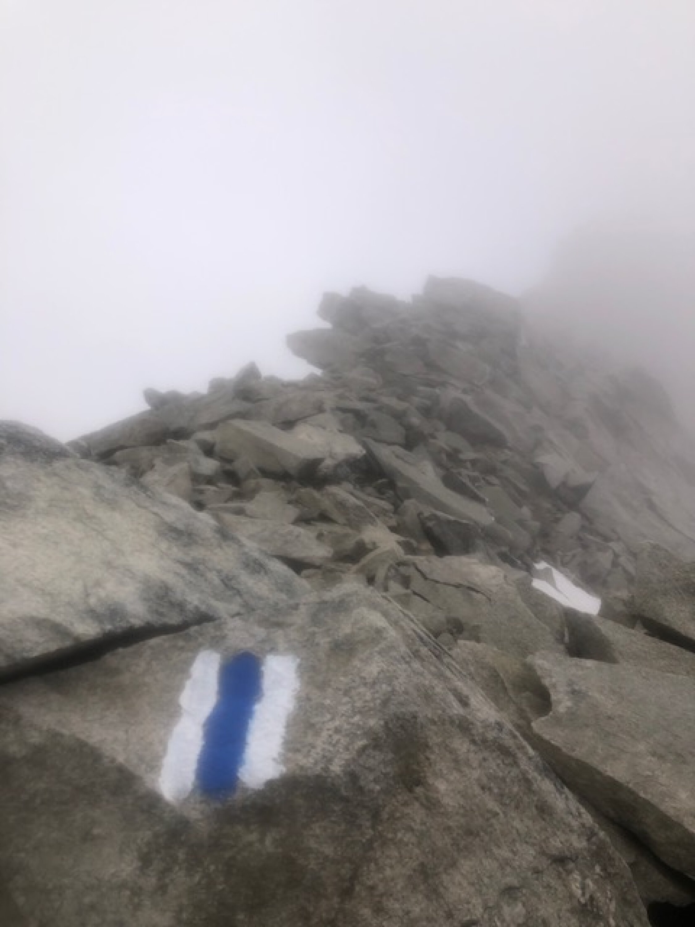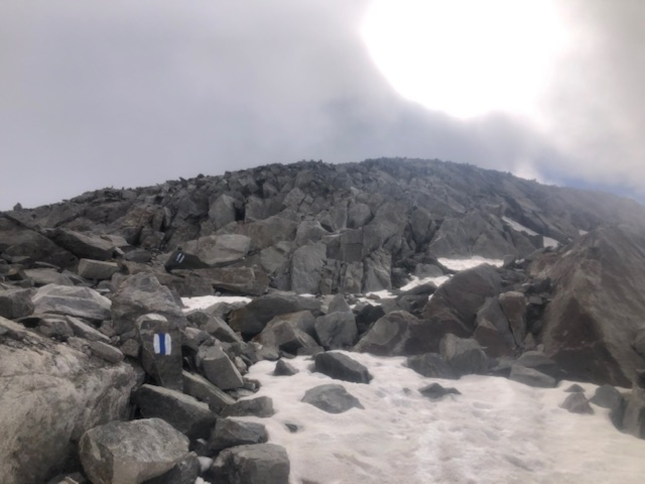 Neu ist der Weg im oberen Teil entlang der Steinmännchen blau-weiss markiert, was den Aufgang vor allem auf der Ebene und im kurzen "Steilstück" (links des Schneefeldes) erleichtert. Perfekt, danke!