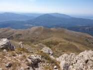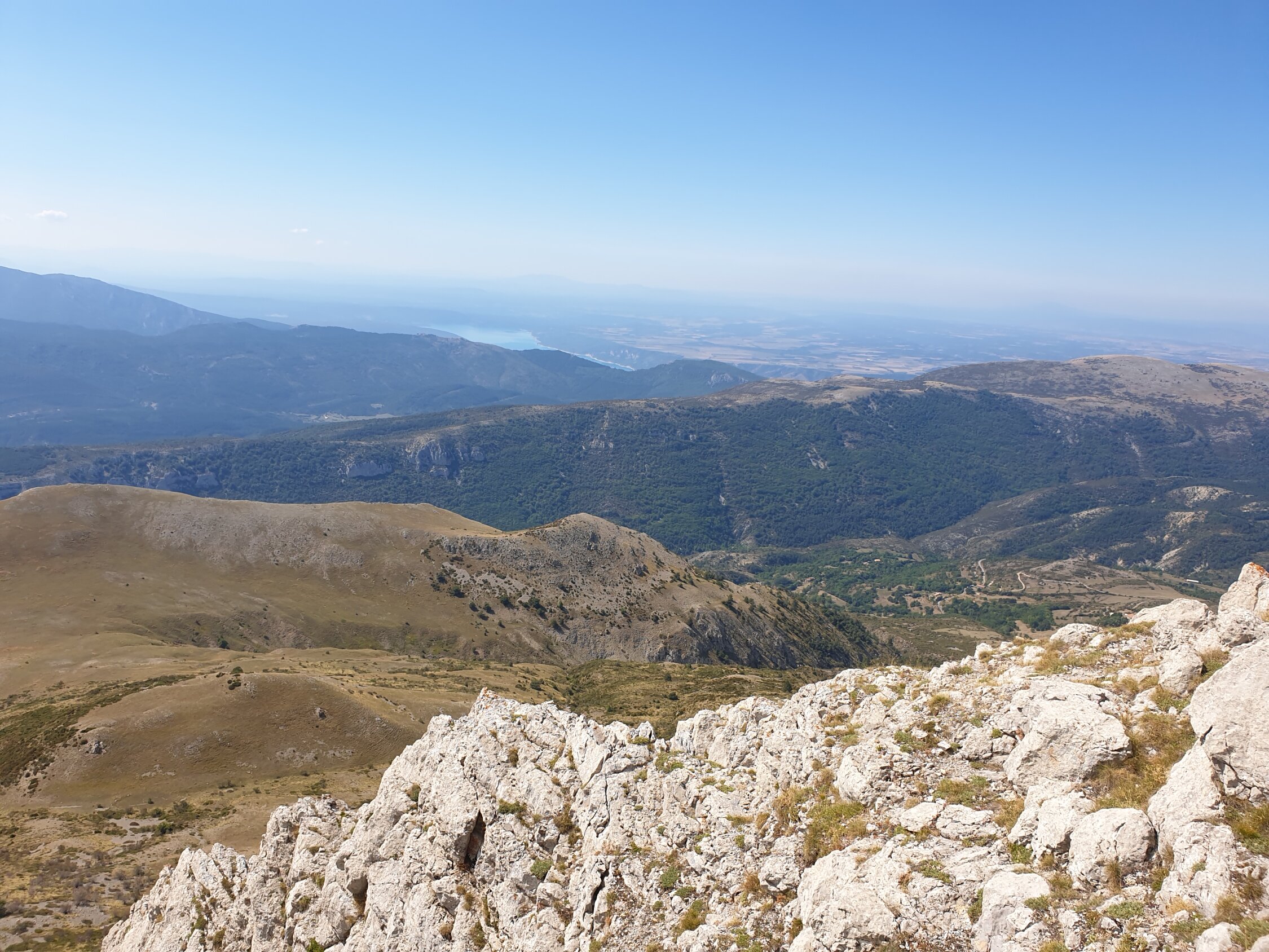 Alles schön trocken und gut begehbar. Wege und Pfade im Aufstieg farbmarkiert, der Grat mit Steinmännern.