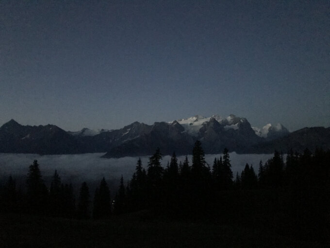 Dadurch gab es das magische Erwachen der ganzen Umgebung und die Schönheit der angestrahlten Berge die vor einem waren.