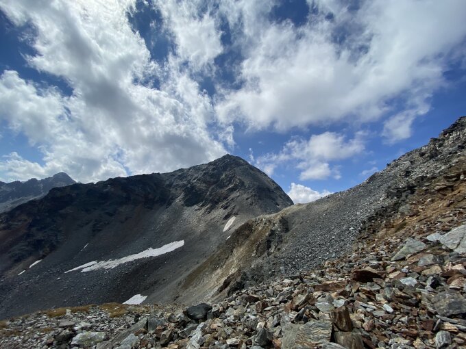 Alles schneefrei und gut markiert. Der Abstieg vom Schwarzhorn führt teils weglos durch eine Geröllhalde (Achtung Steinschlaggefahr ausgehend von anderen Wandergruppen).