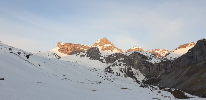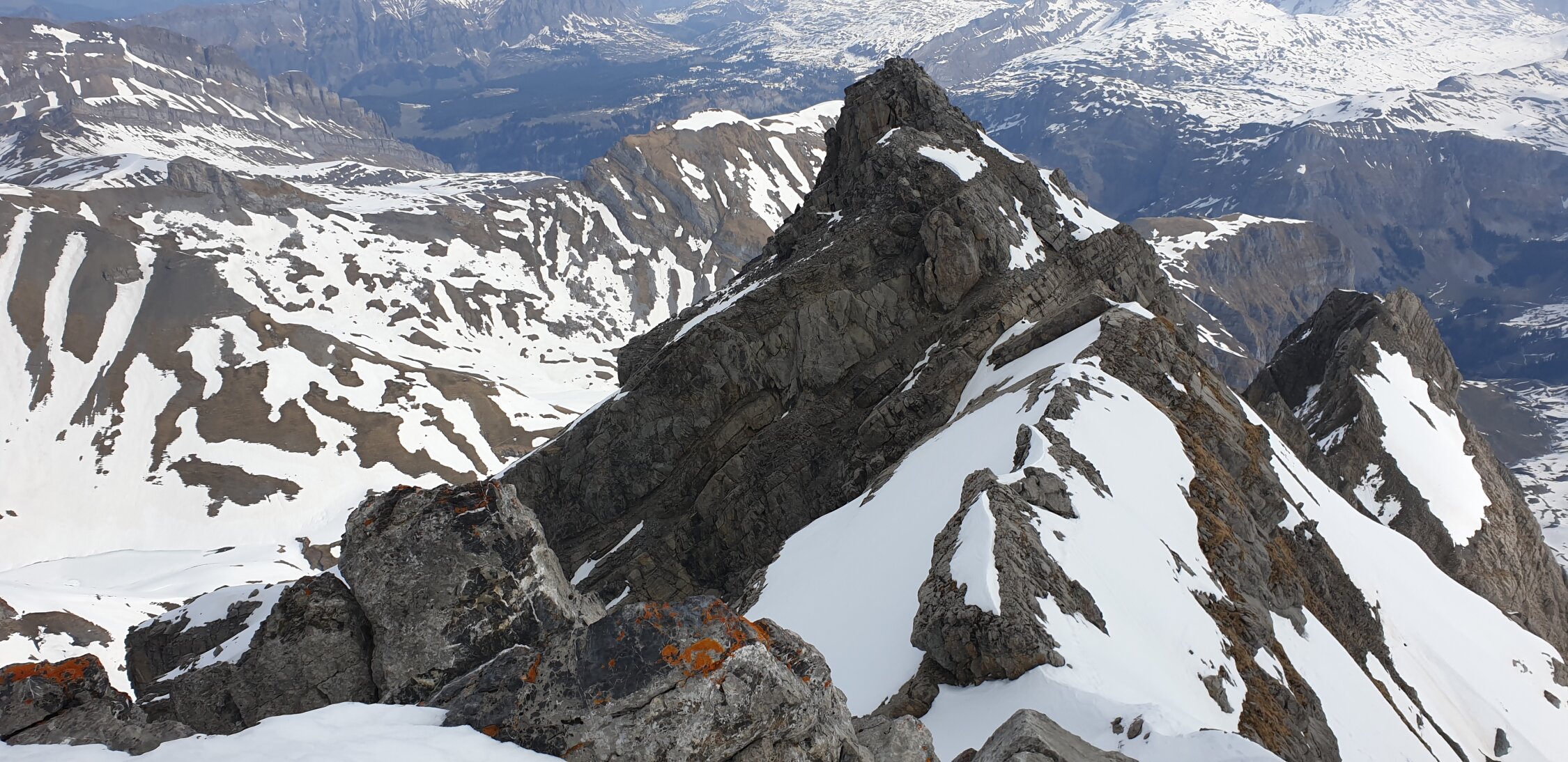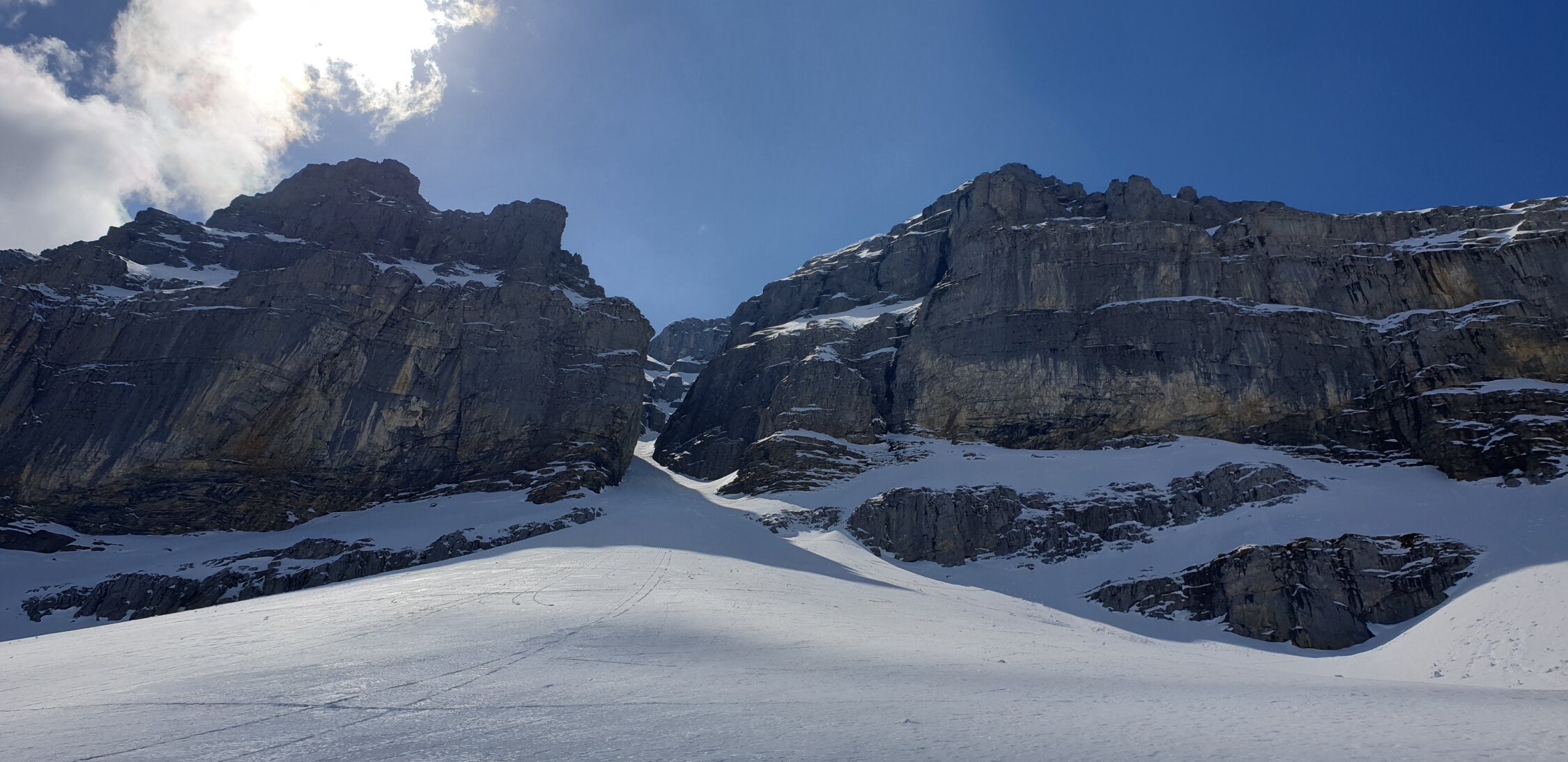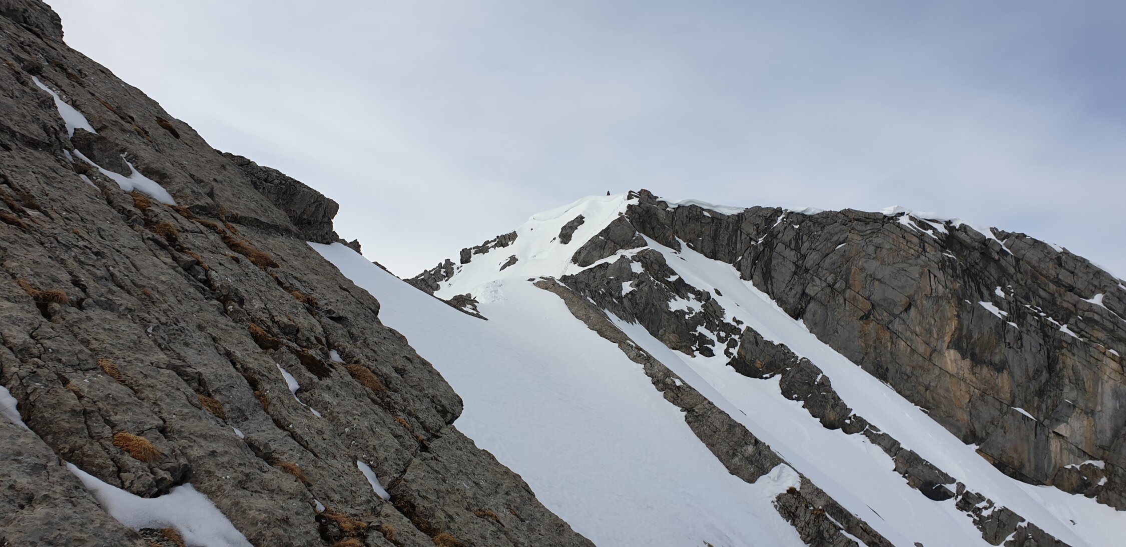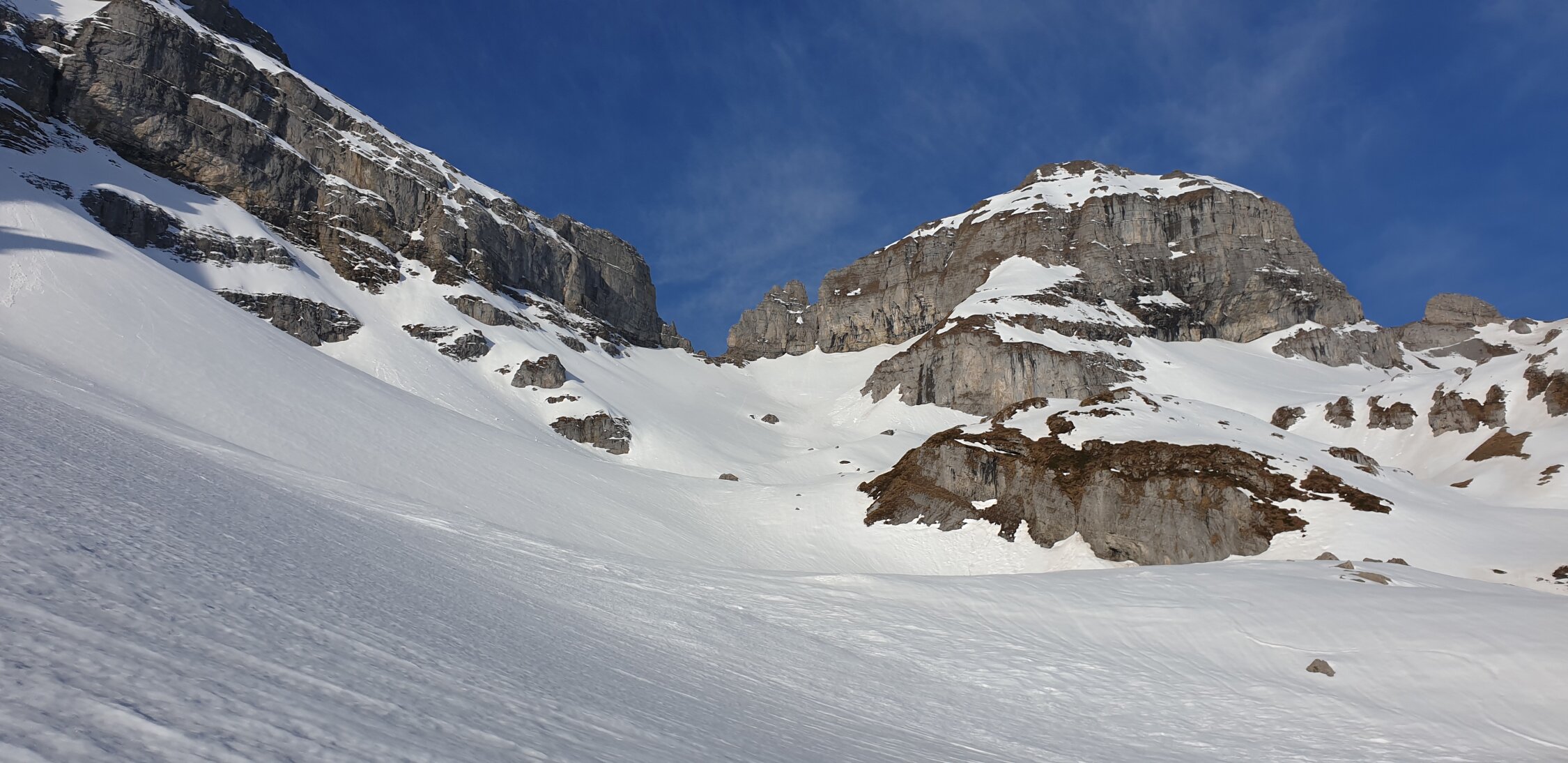 Start der Tour am 6.10 Uhr bei Spitzbäch oberhalb vom Sahli, zu später was sich dann herausstellte, der Geprengte Weg war schon ziemlich Schneefrei, beim Nordcoloir angekommenn noch mit Ski etwas aufsteigen, wechsel auf die Steigeisen mit Pickel, der Aufstieg war sehr mühsam mit noch Wühlpulverschnee, bei der Verzweigung vom Y Colouir wählte ich den linken Zweig, oben in der Nähe vom Grat musste ich eine Platte umgehen, der Schlussteil entlag des Grates war schon ziemlich Aufgeweicht, beim Abstieg gab es einen Wächtenabbruch oberhalb des Y auf das rechte Colouir, wieder einmal Glück gehabt, ab Mitte Nordschlucht dann Abfahrt mit Ski.