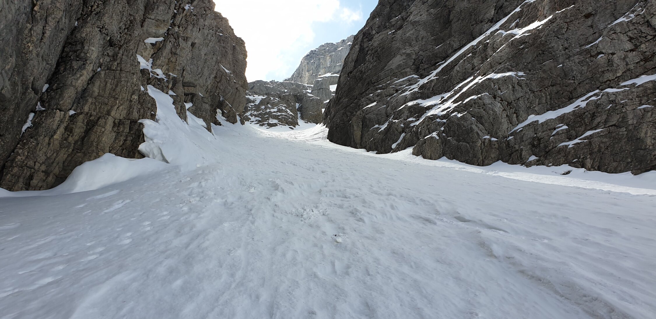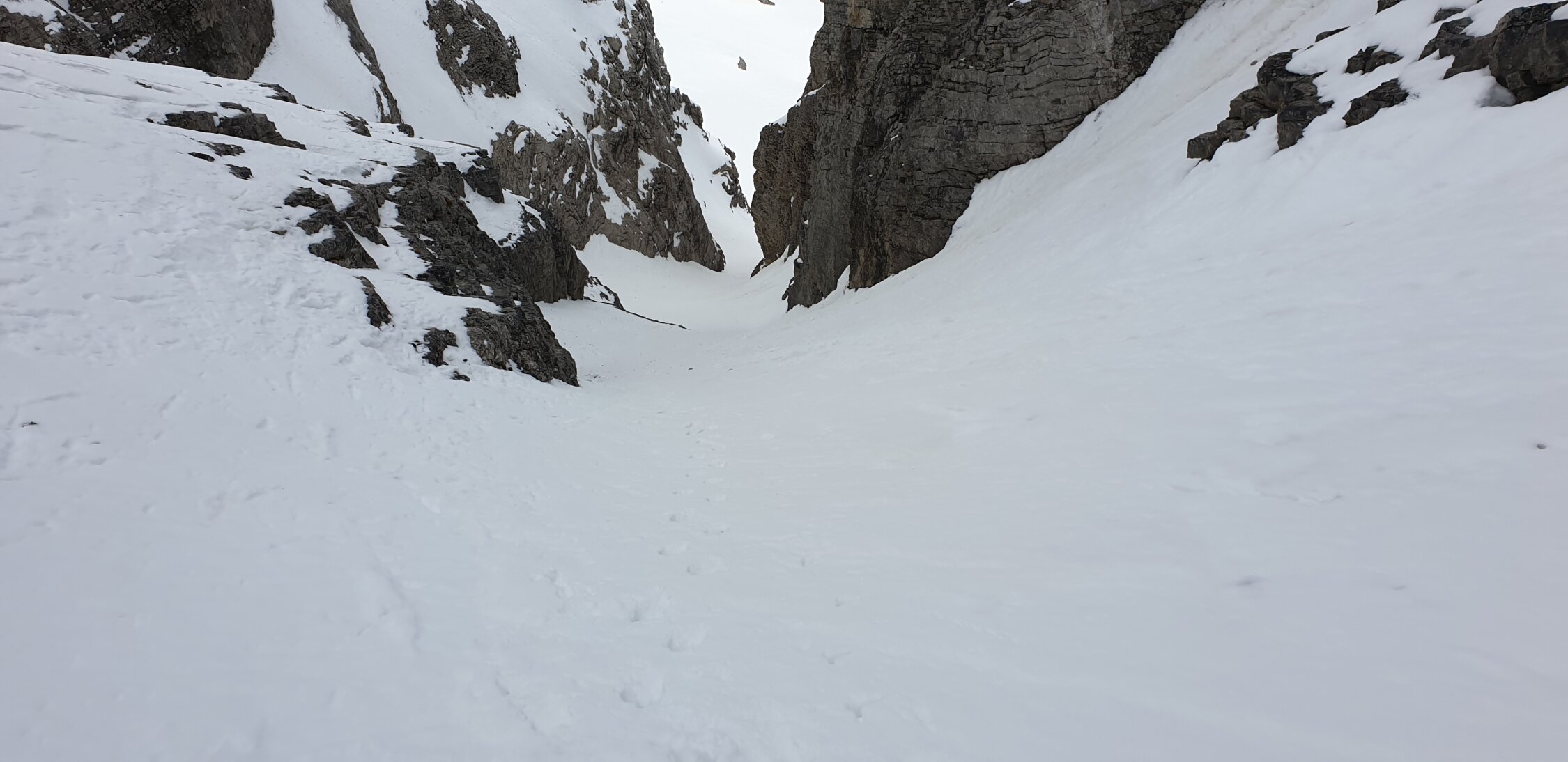 Anspruchsvolle Skitour die absolut sichere Verhältnisse braucht, schon fast eine Abendteuer diese Schlucht.