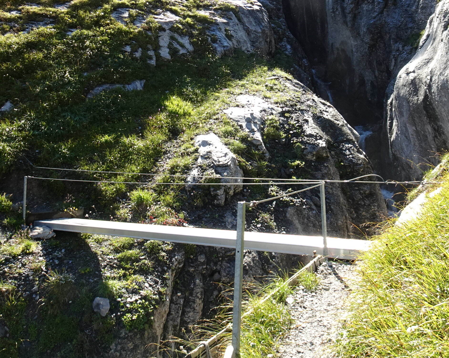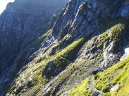 Im Abstieg war die untere Wegspur immer noch feucht. Vorallem musste man bei den Holzstufen aufpassen.