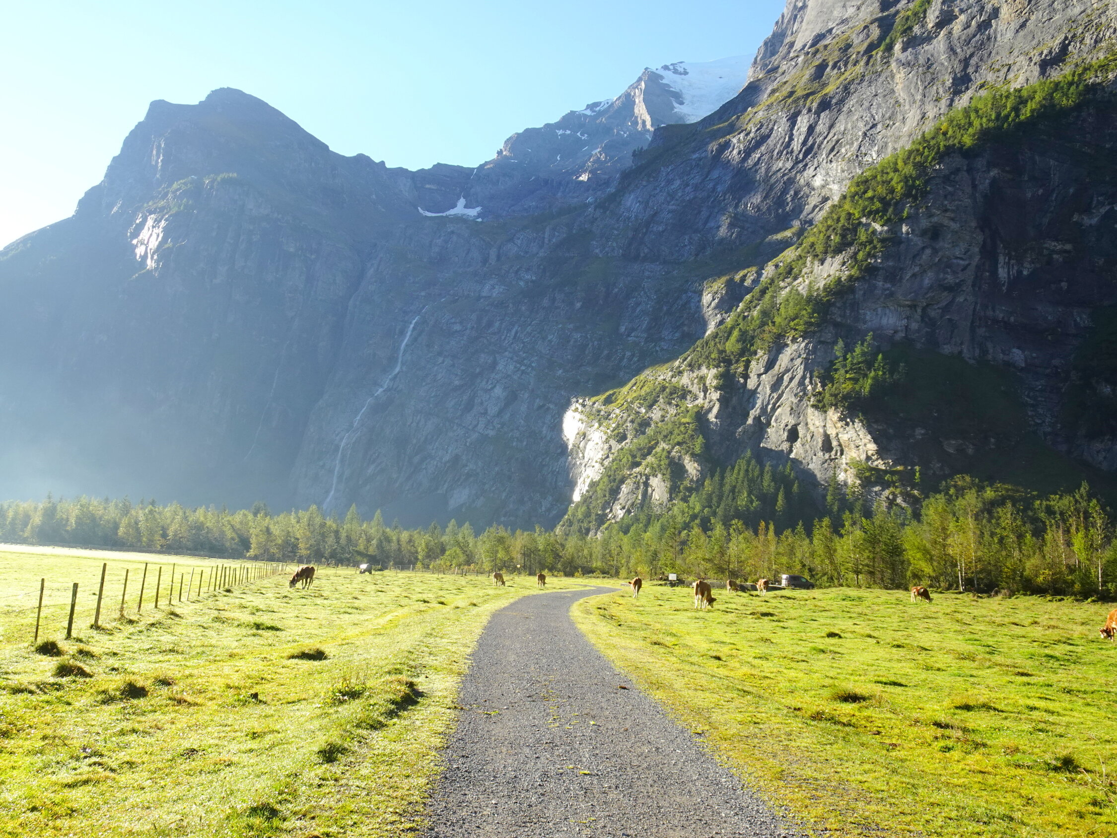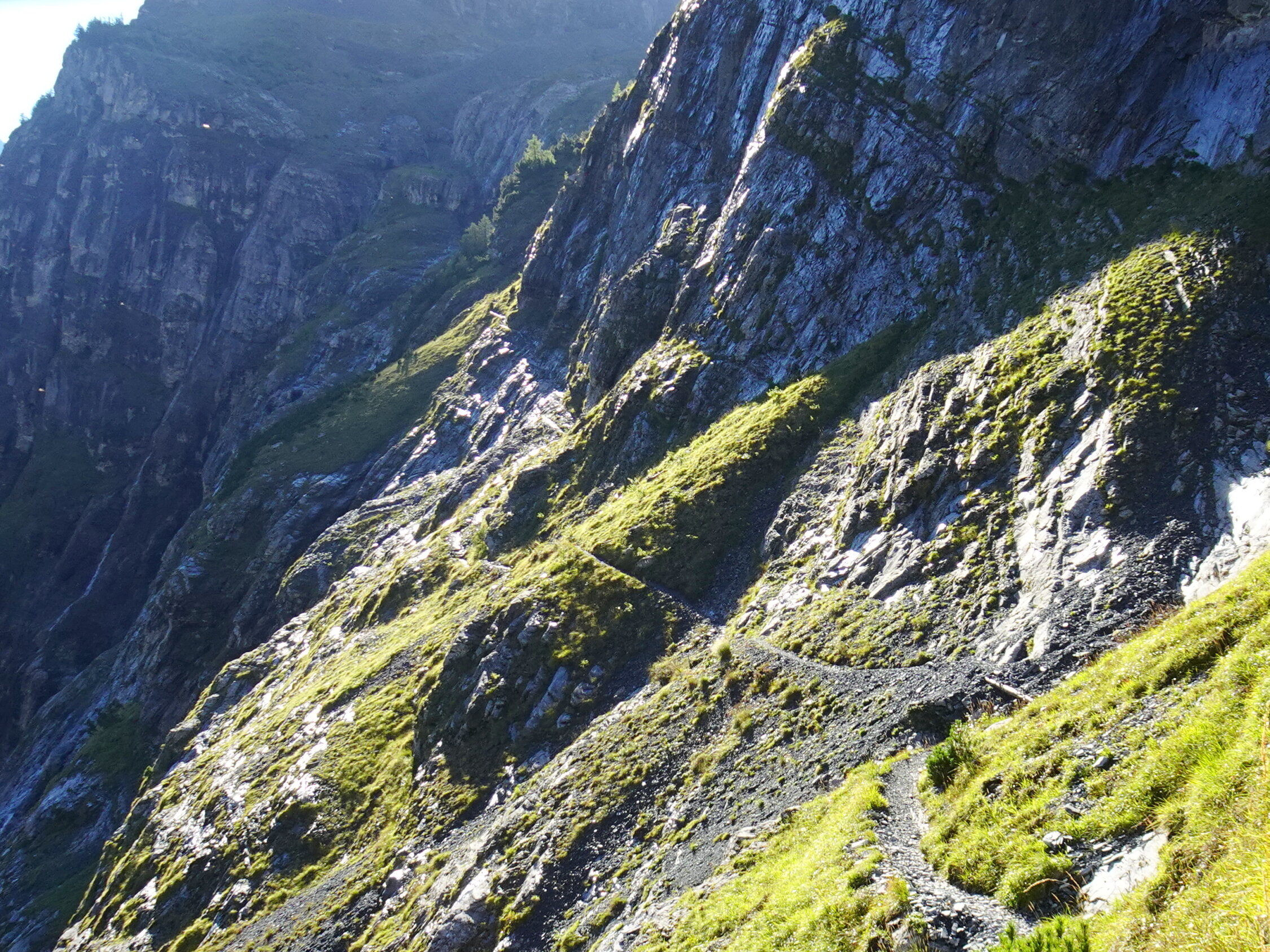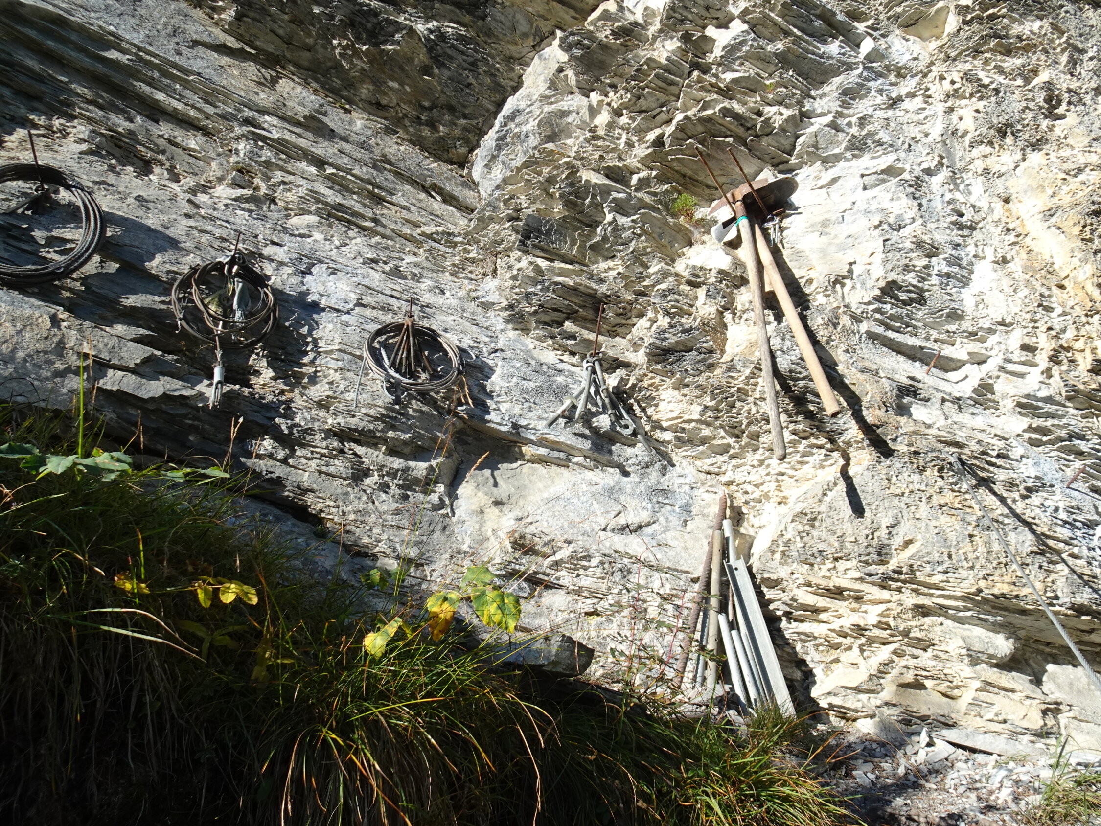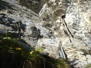 Der Weg in der unteren, schattigen Wand war morgens, bei kaltem Wind, feucht. Sobald man die sonnigen Stellen erreichte, besserte es.