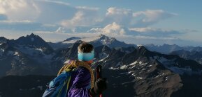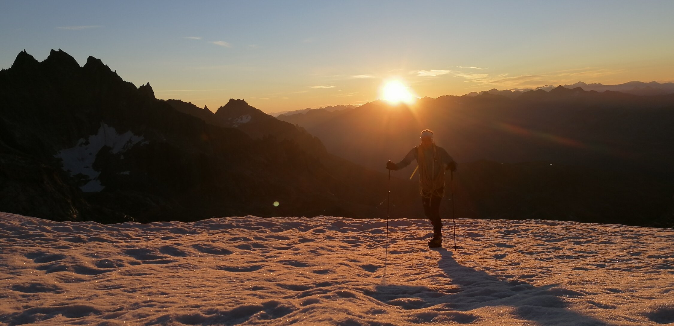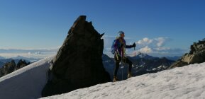 Traumtag bis 12 Uhr, dann zunehmend Wolken an den Gipfeln. Nordgrat mit wenig Neuschnee im Abstieg