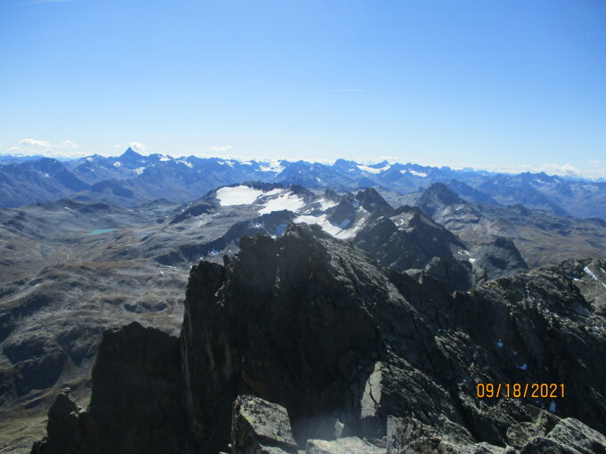 Zeiten: 5.20 h Aufbruch von der Konstanzer Hütte, Ankunft Gipfel kurz vor 13 h. 14 h Abstieg über die Normalroute, 18 h wieder an der Konstanzer Hütte.