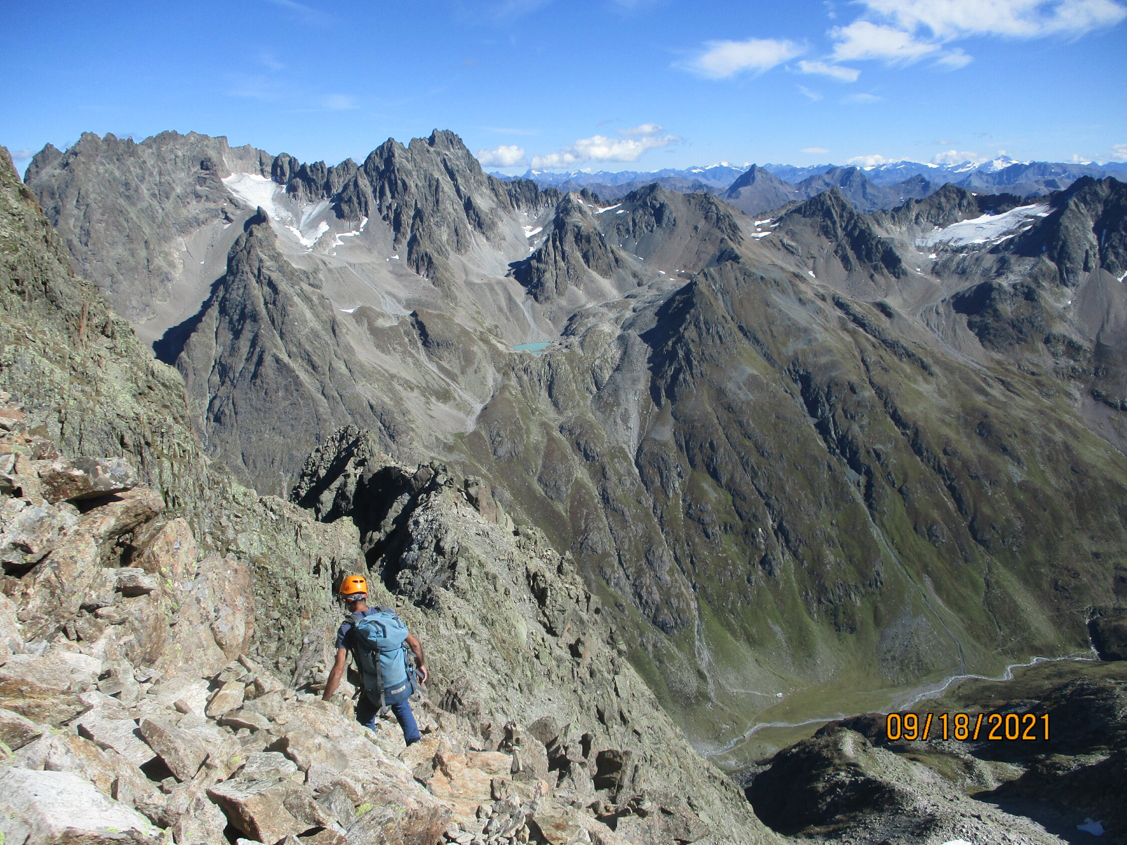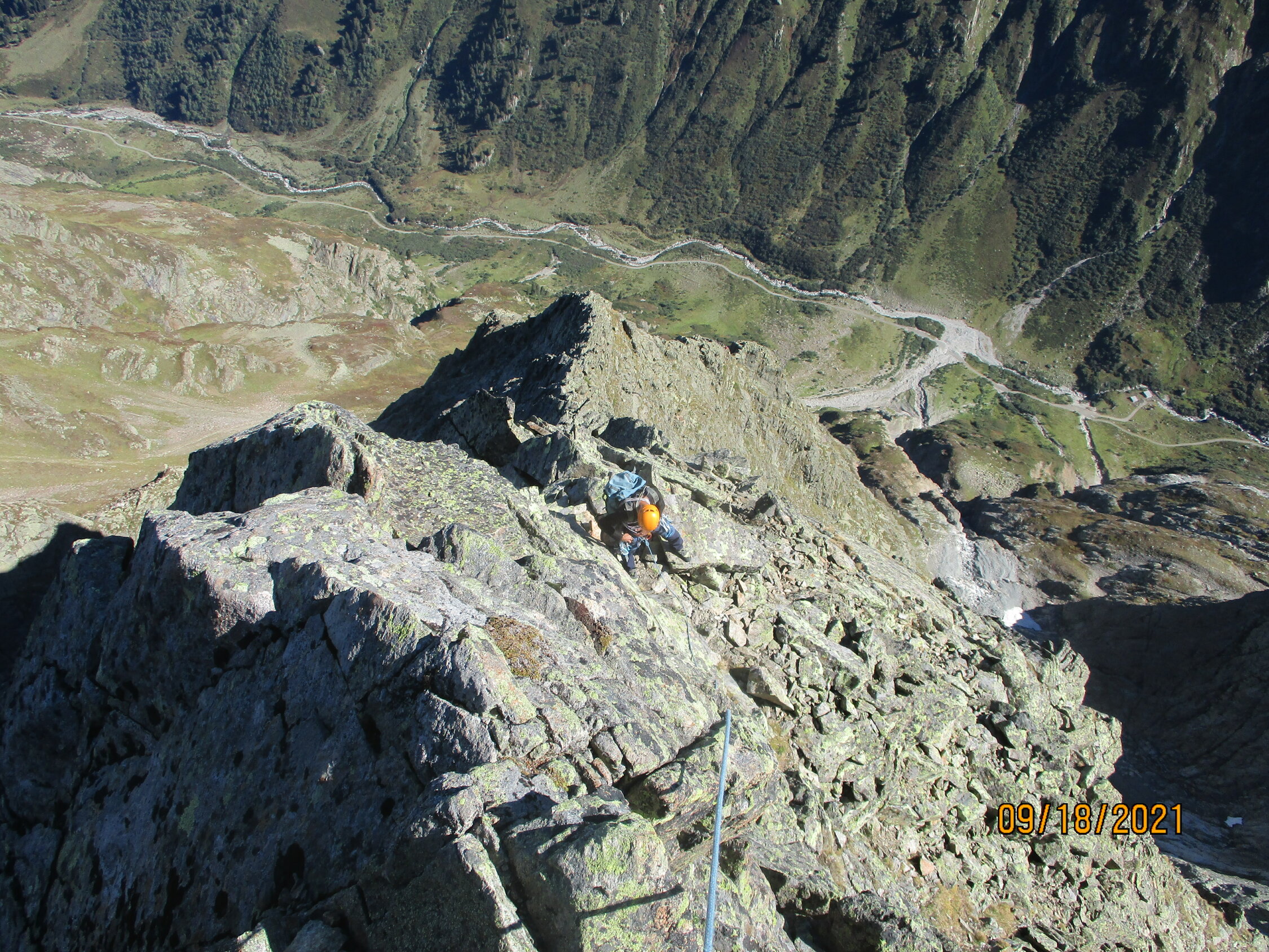 In einigem Abstand hinter uns war noch eine englische Seilschaft unterwegs. Drei weitere Personen kamen über den Normalweg auf den Gipfel, das war´s. Herrliches Spätsommer/Frühherbstwetter. Die Botanik zeigt bereits bunte Herbstfarben :-).