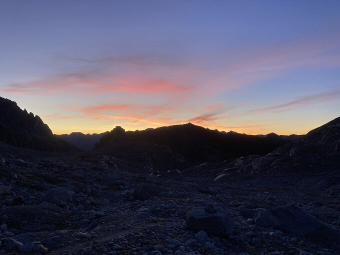 Im Aufstieg haben wir die Route ganz über den Tiefengletscher (südlich Pkt.2714) genommen: Steilstück bei ca 2600 ist etwas schuttig-rutschig- mühsam, aber gut machbar. Im Abstieg dann Route gemäss SAC-Tourenportal über den Sattel nördlich Pkt.2765: ist sehr schön, aber an zwei Stellen ist der Weg unterbrochen durch zwei Kletterstellen- hier wären Fixseile sehr hilfreich, vor allem wenn die Beine schon etwas müde sind...